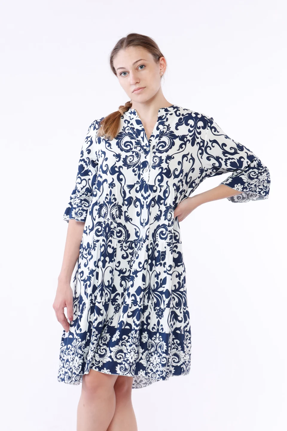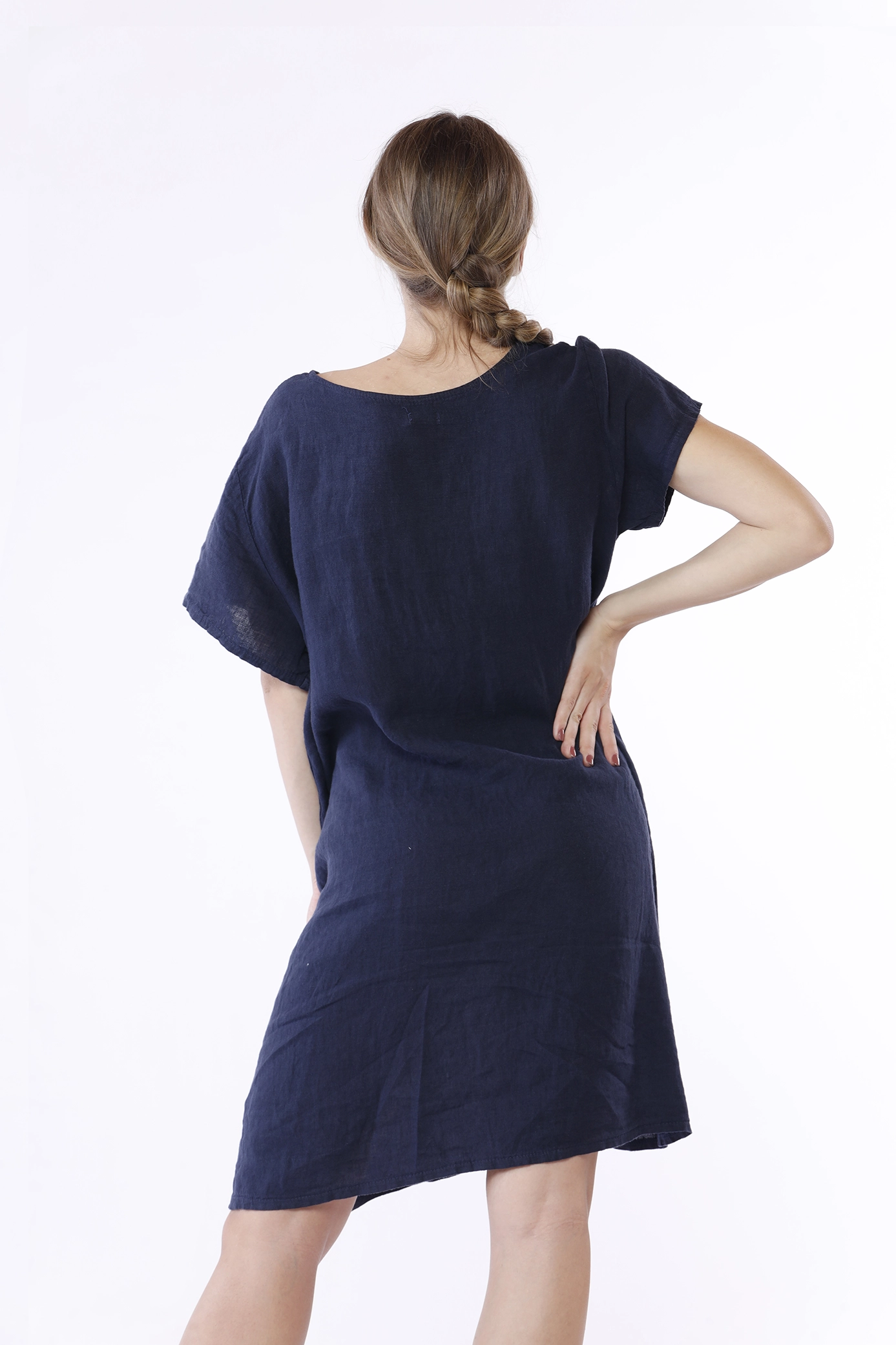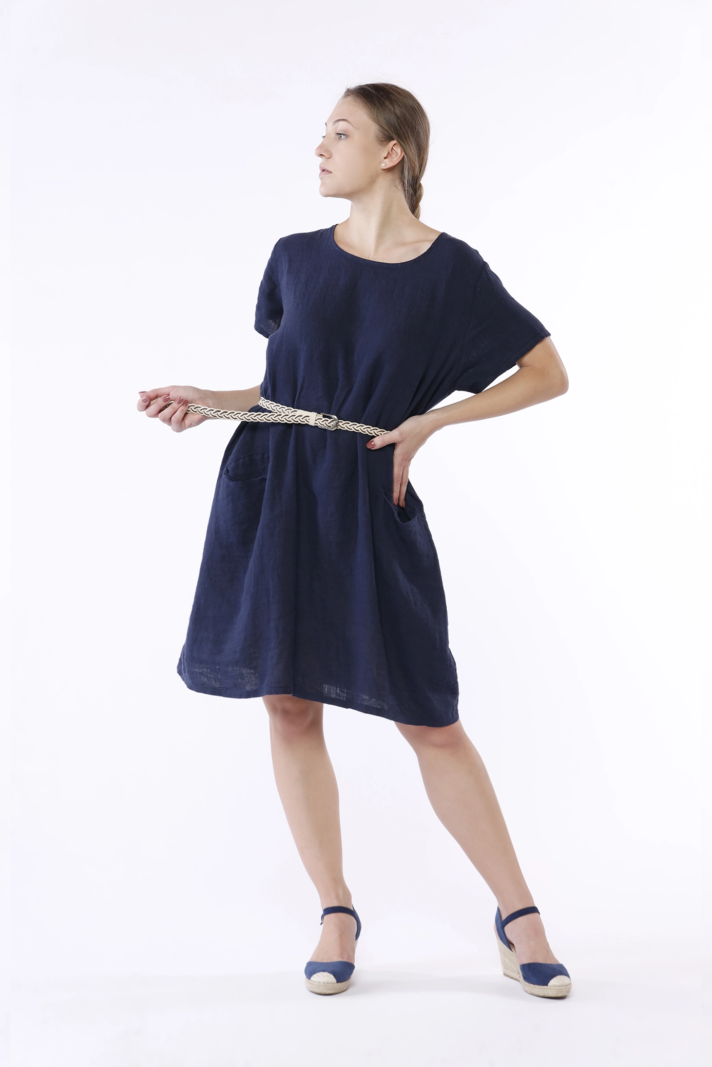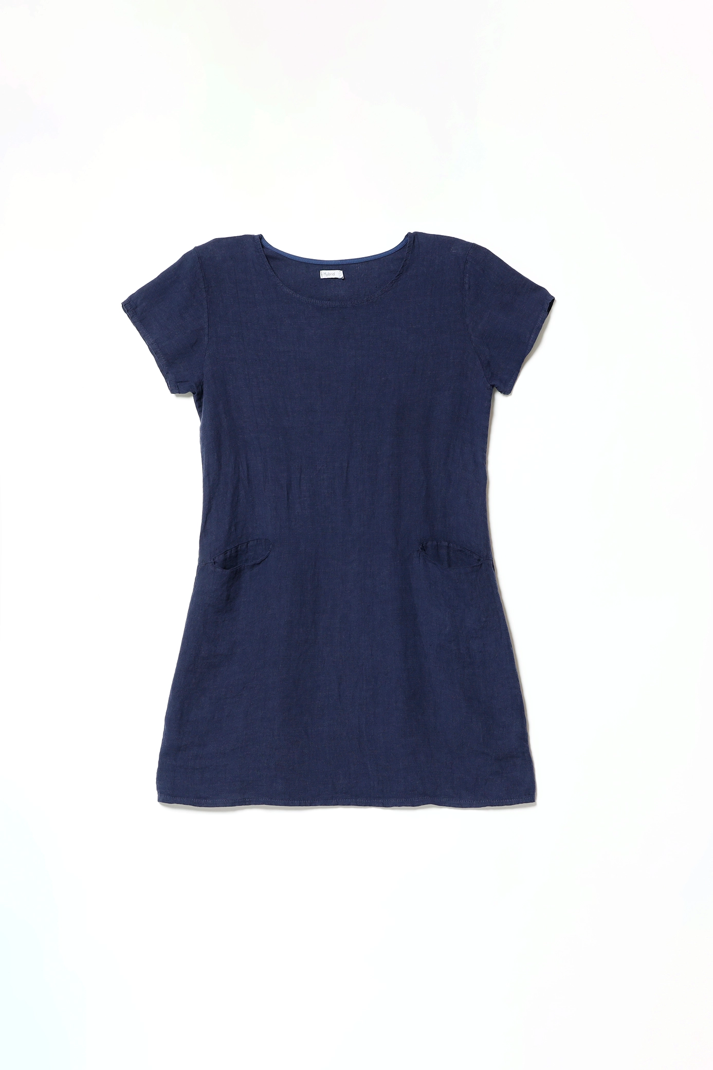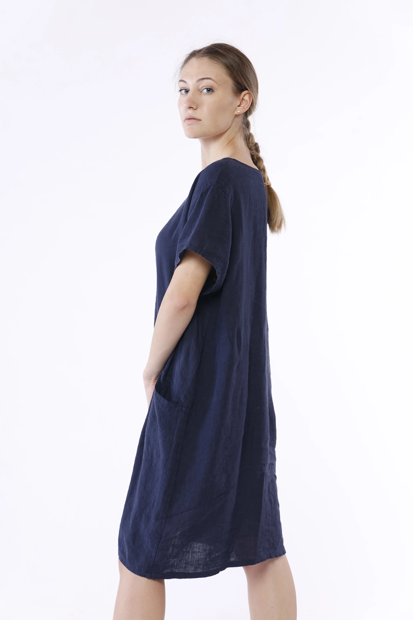 Abito lungo in fresco lino, a manica corta e con comode tasche sul davanti
