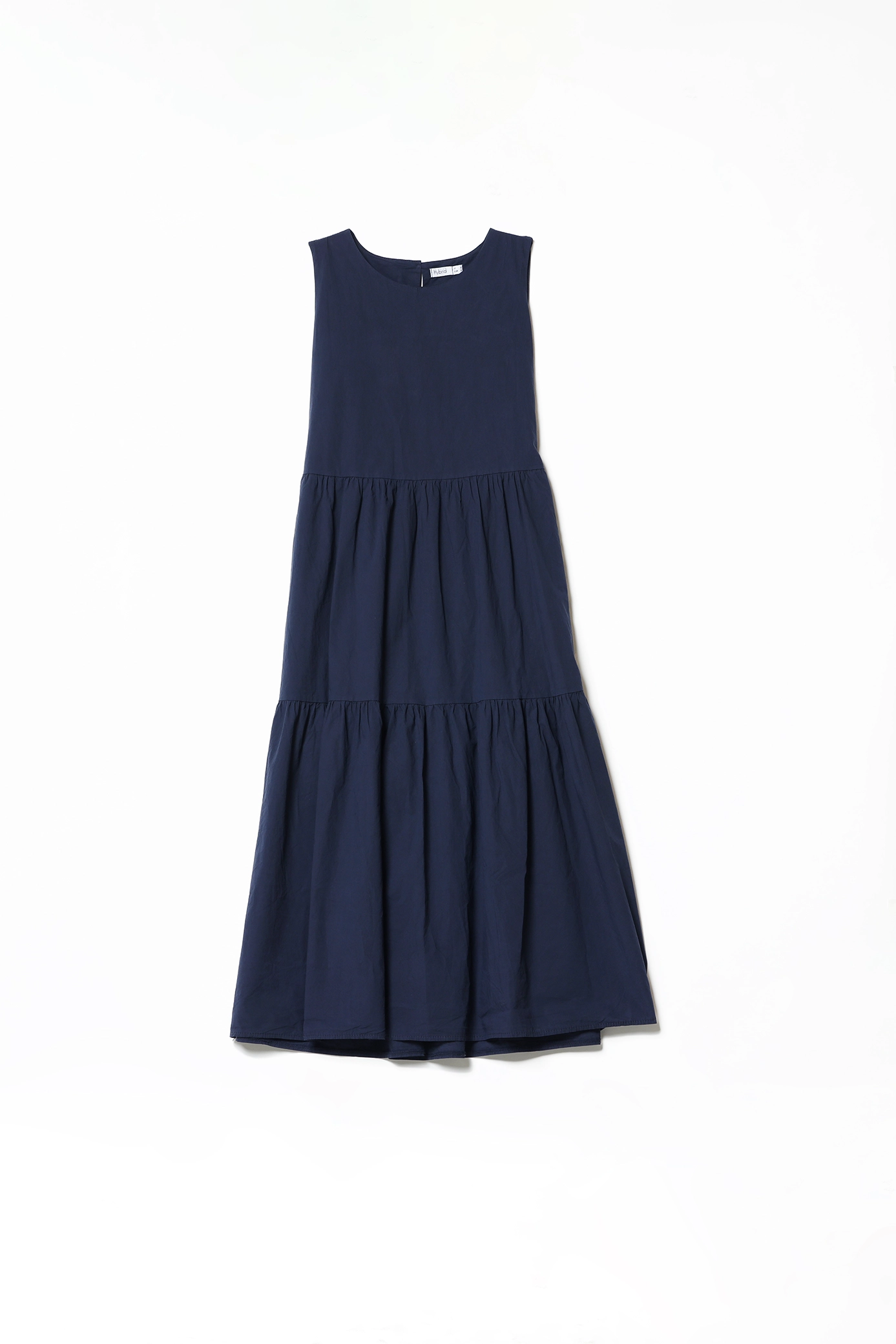 Abito lungo smanicato in fresco cotone, con gonna stratificata e grazioso occhiello di chiusura alla nuca