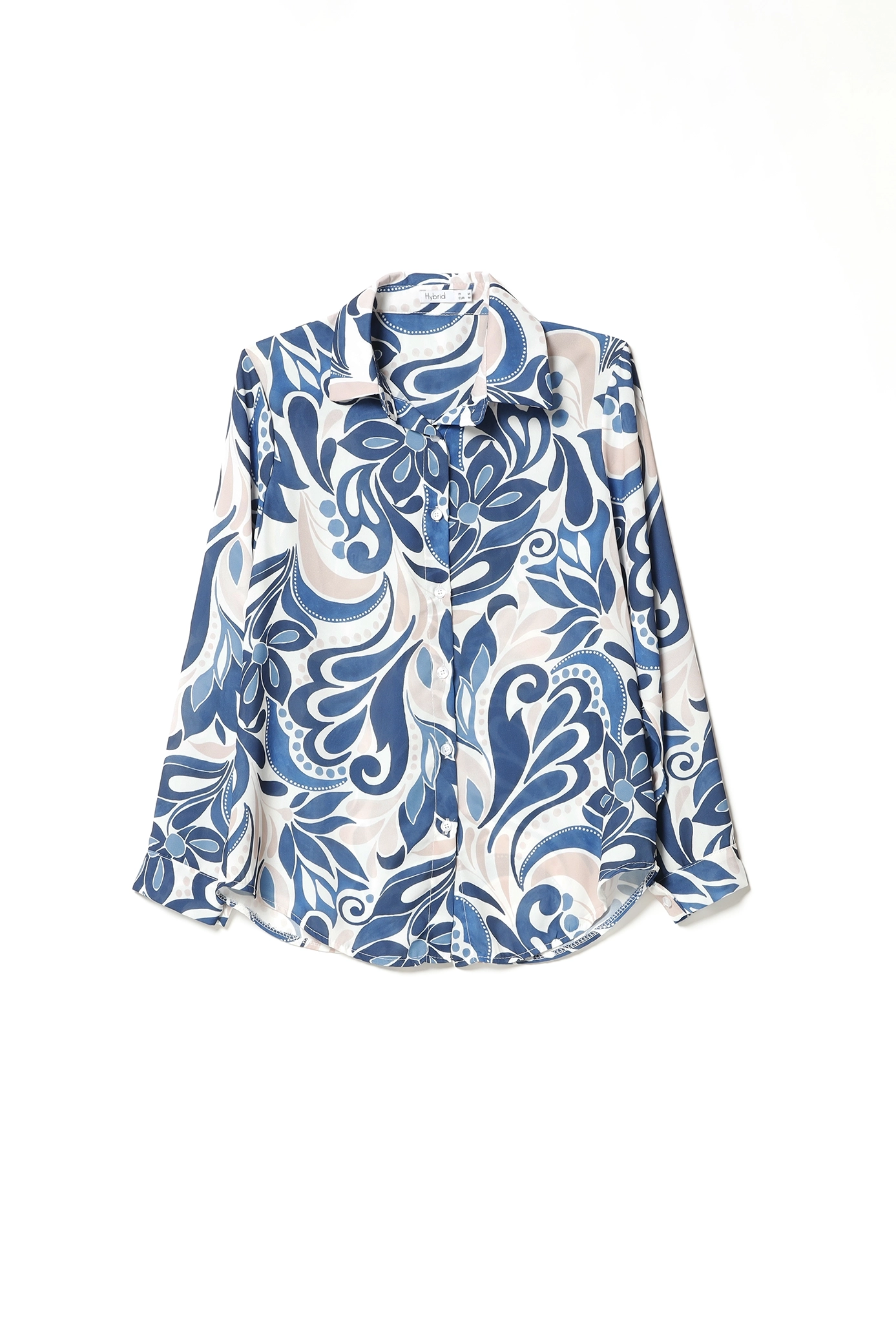 Blusa con bottoni stampa fantasia, a manica lunga e con colletto alla francese