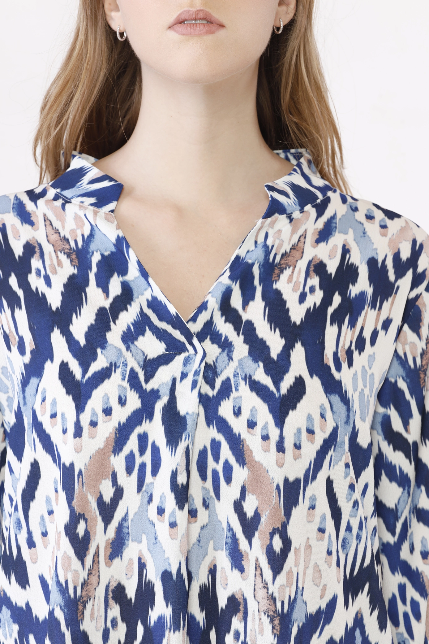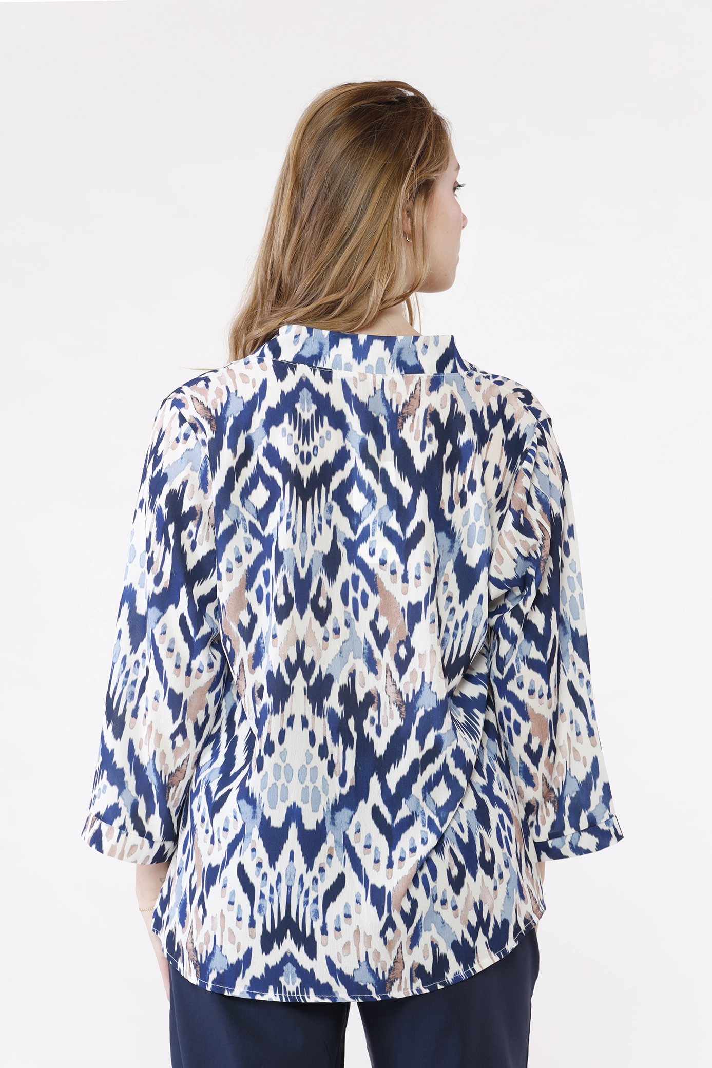 Blusa casual con colletto alla coreana aperto sul davanti, manica a kimono ed eleganti bottoncini