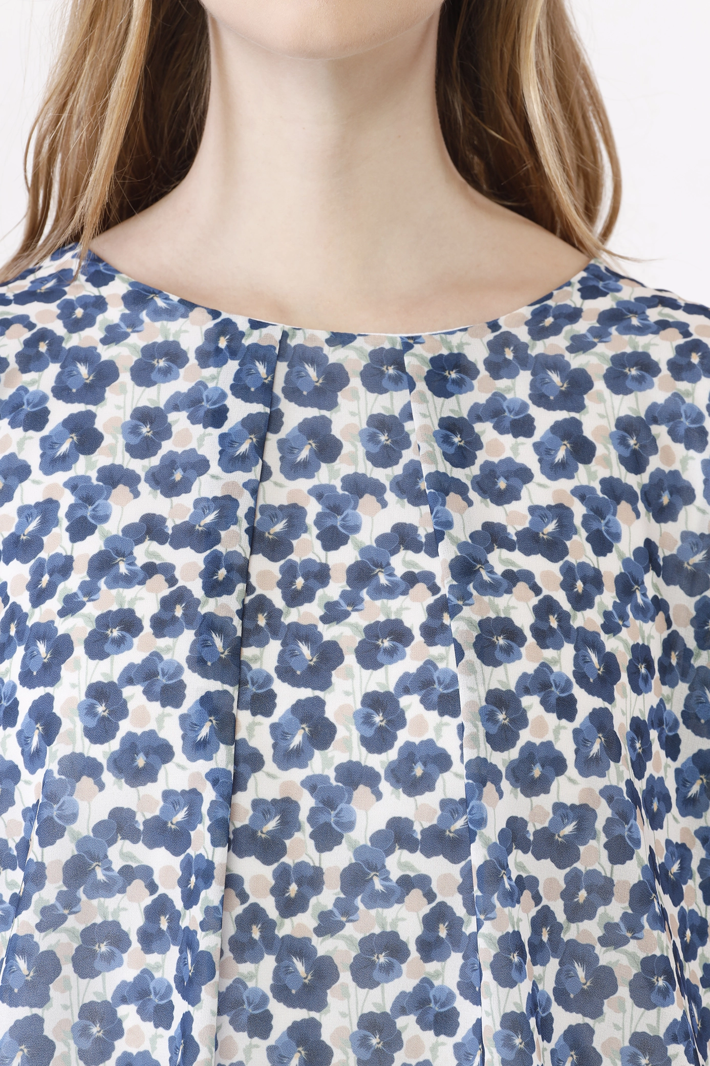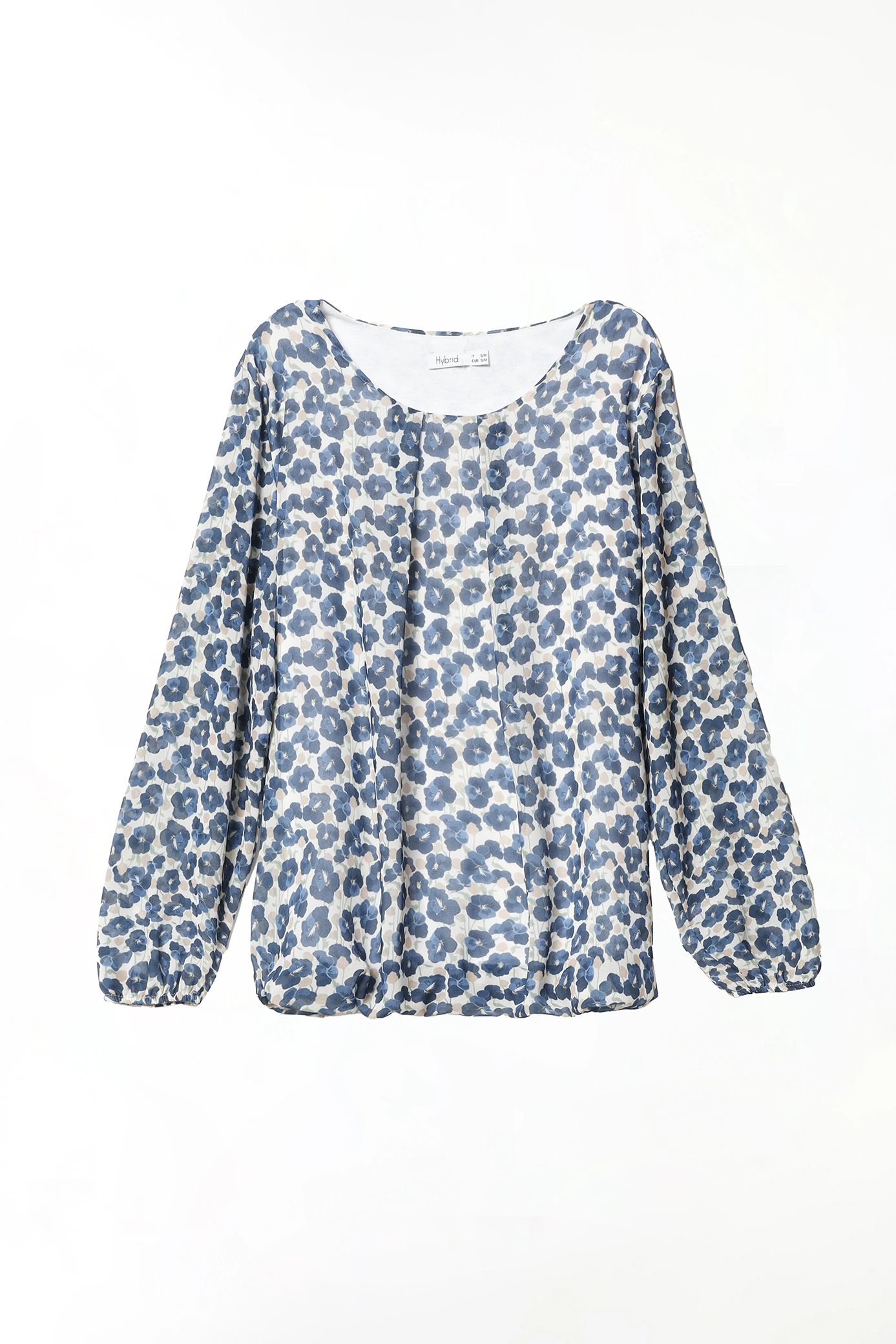 Blusa a fantasia di fiori, con maniche e orli a sbuffo elasticizzati