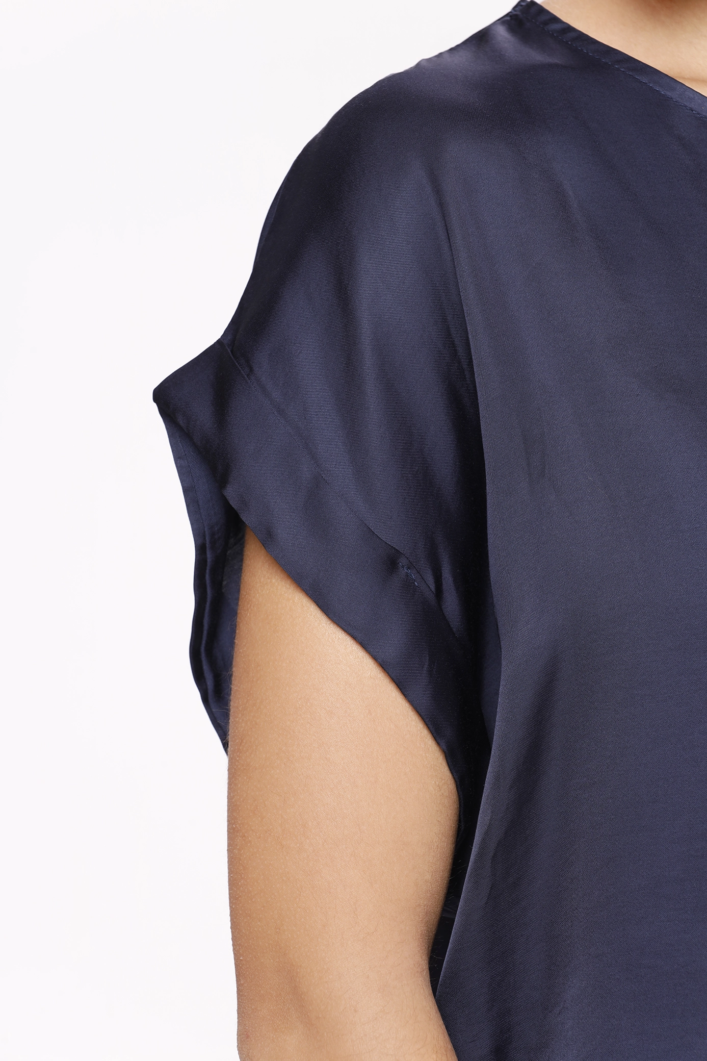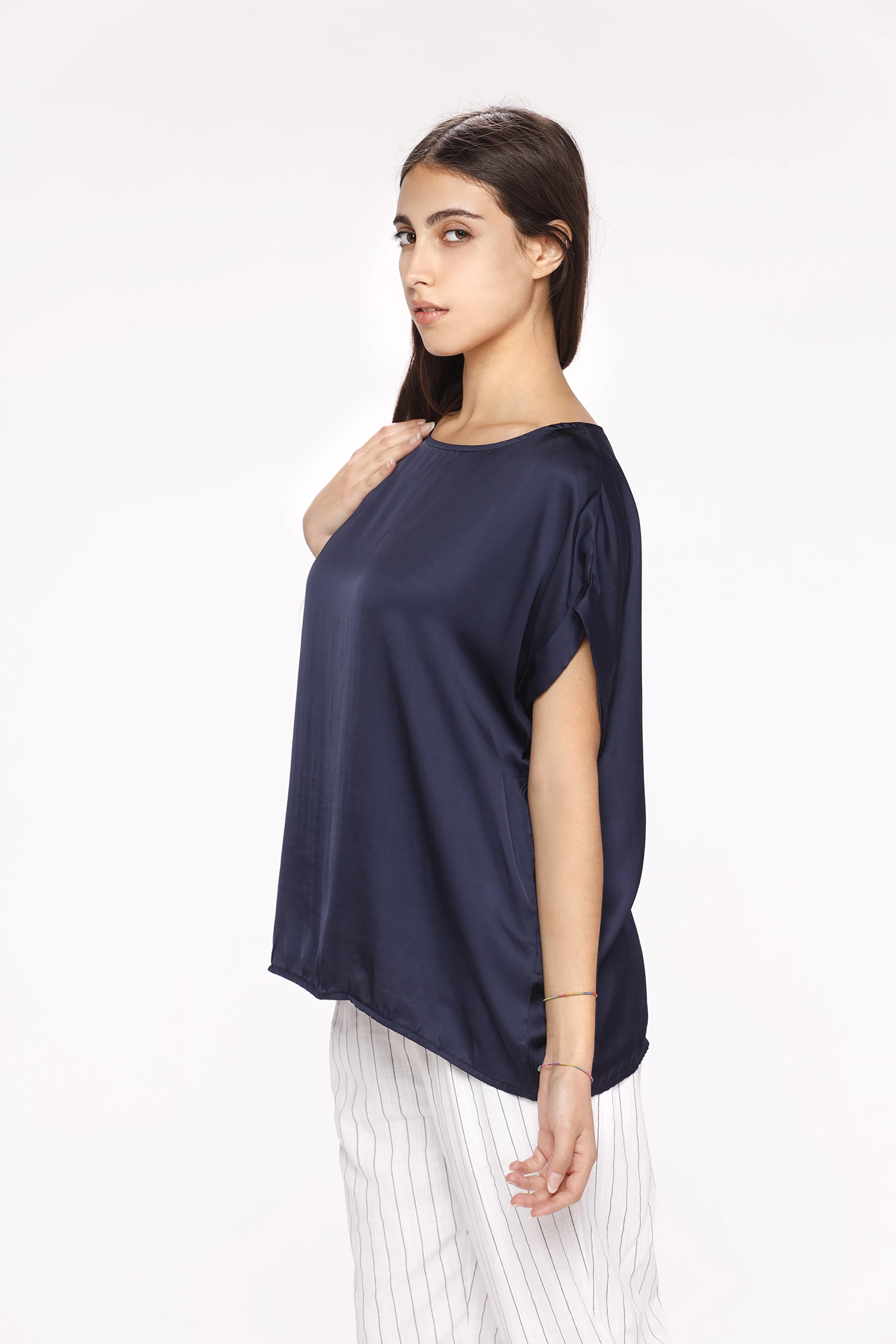 Blusa ampia e fresca,a manica larga, con scollo a giro e cuciture esterne agli orli