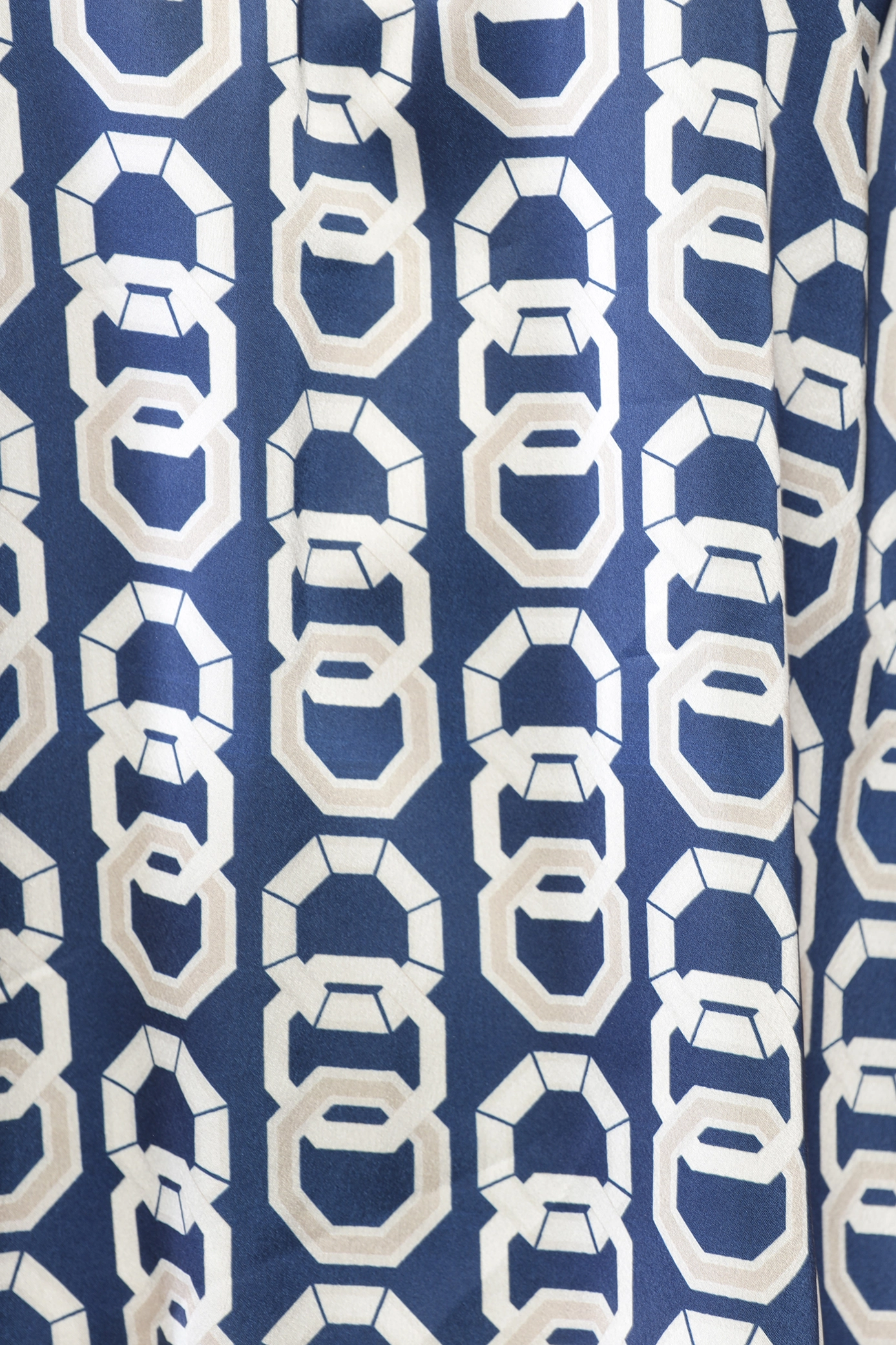Blusa stampa catene, a manica lunga, con grazioso bottoncino sullo scollo a giro
