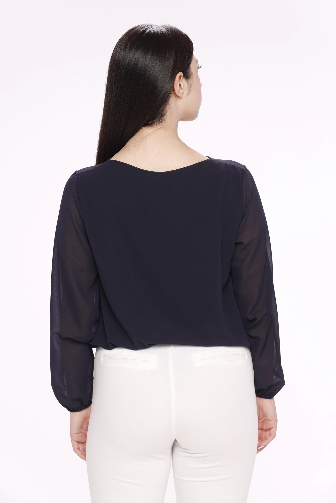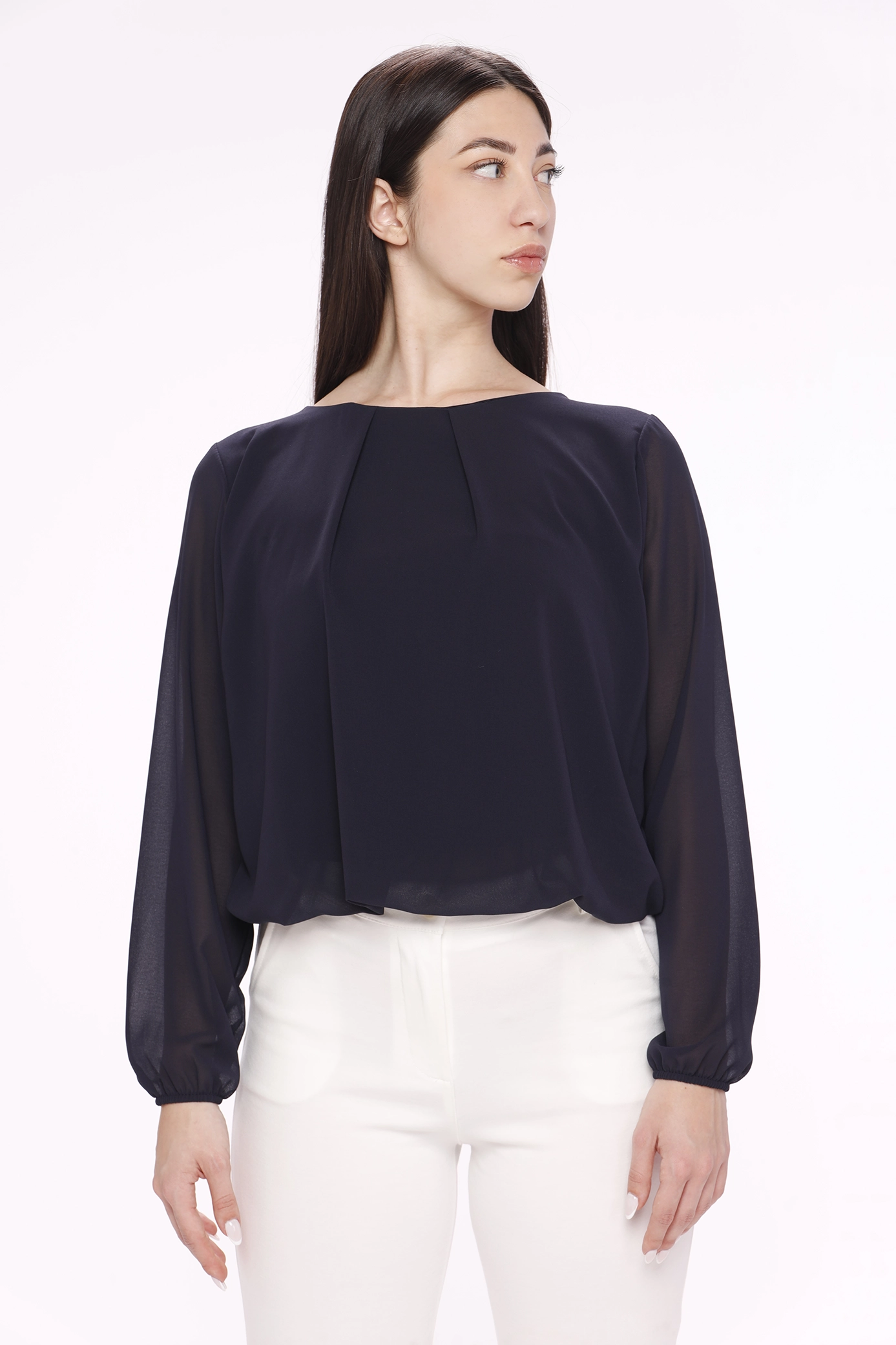 BLUSA girocollo a sbuffo con pieghe sul davanti