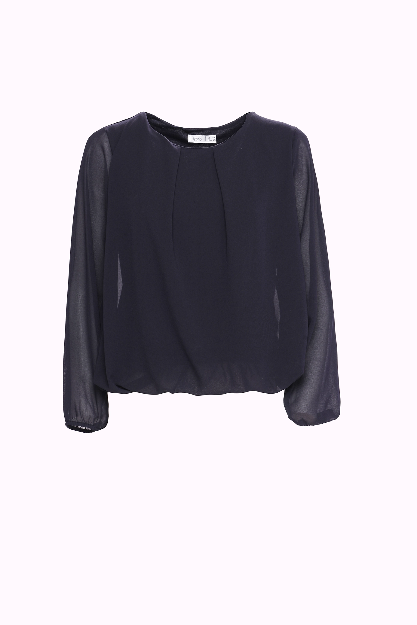 Blusa elegante e fresca a sbuffo con graziose pieghe sul davanti ed elastico in vita