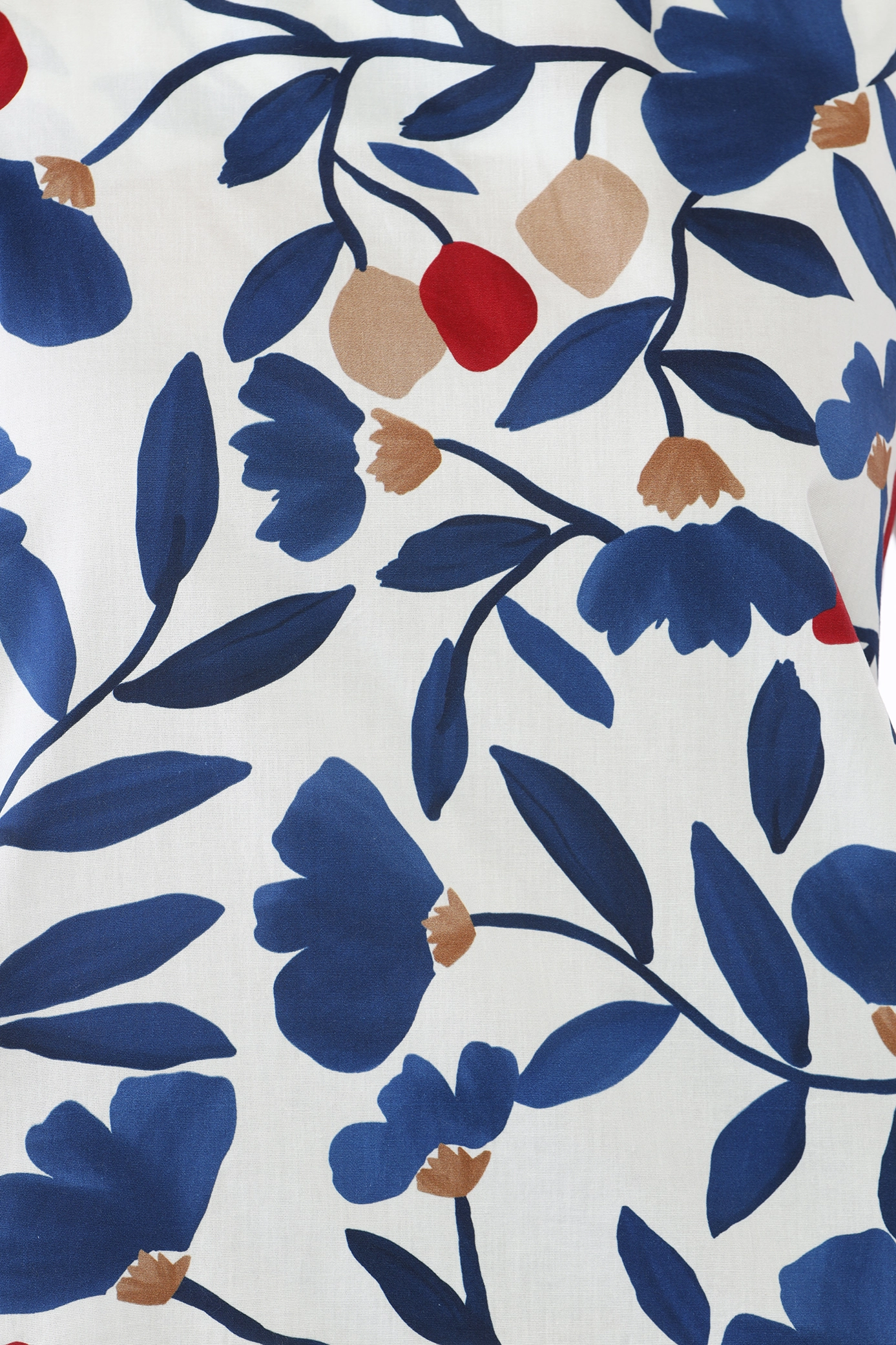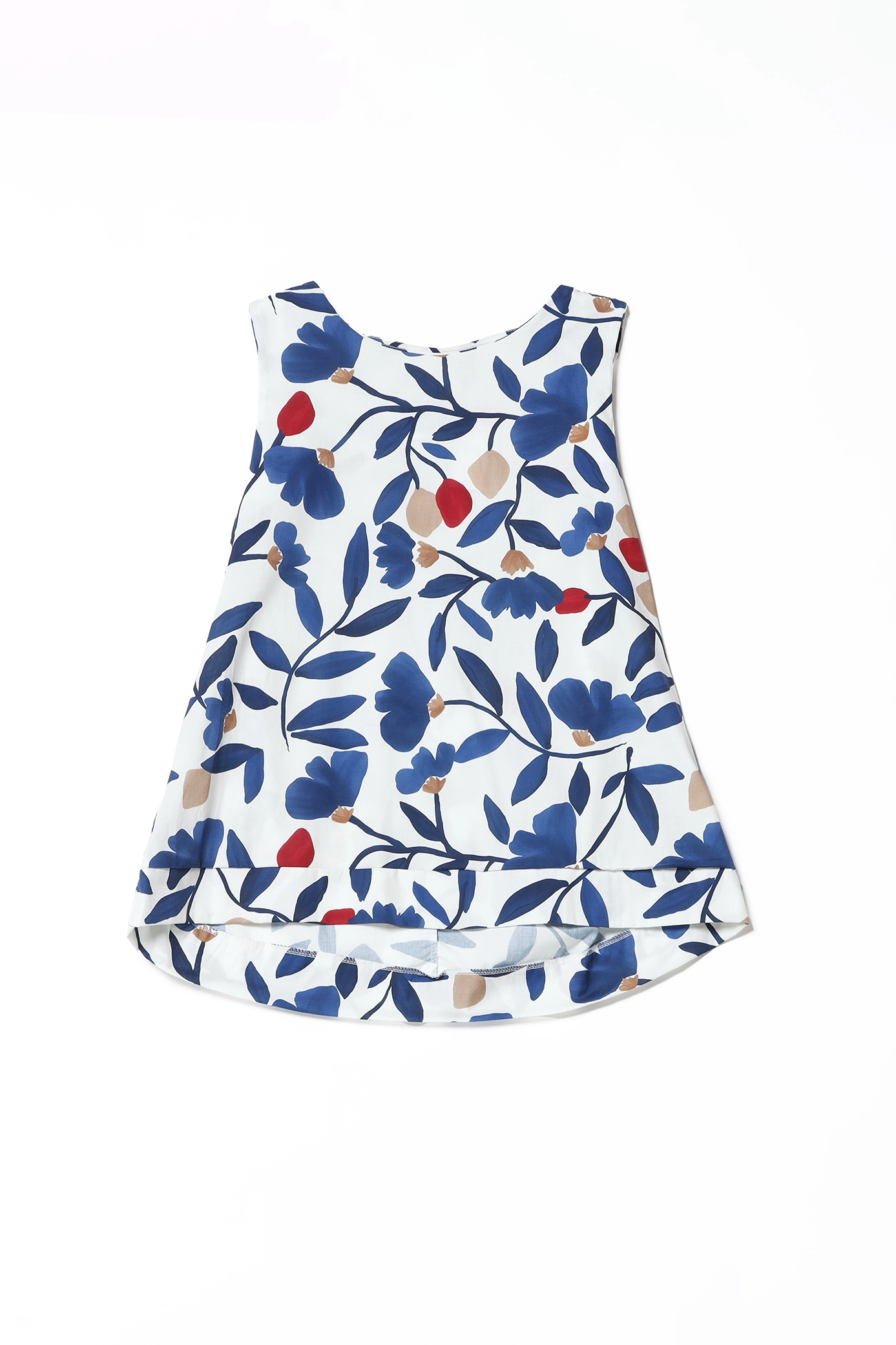 Blusa smanicata a fantasia di fiori con orlo alto al fondo