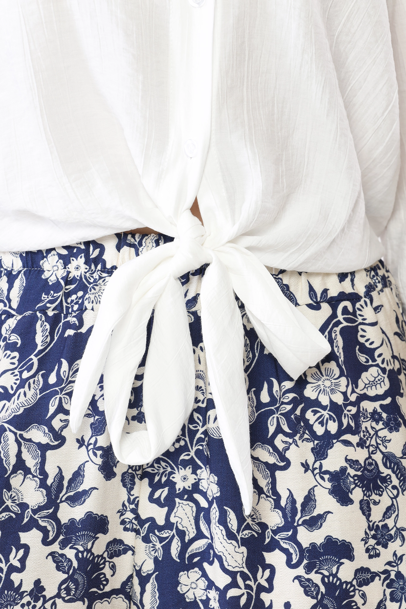 Camicia fresche sere d’estate, con colletto alla francese ed elegante nodo alla vita