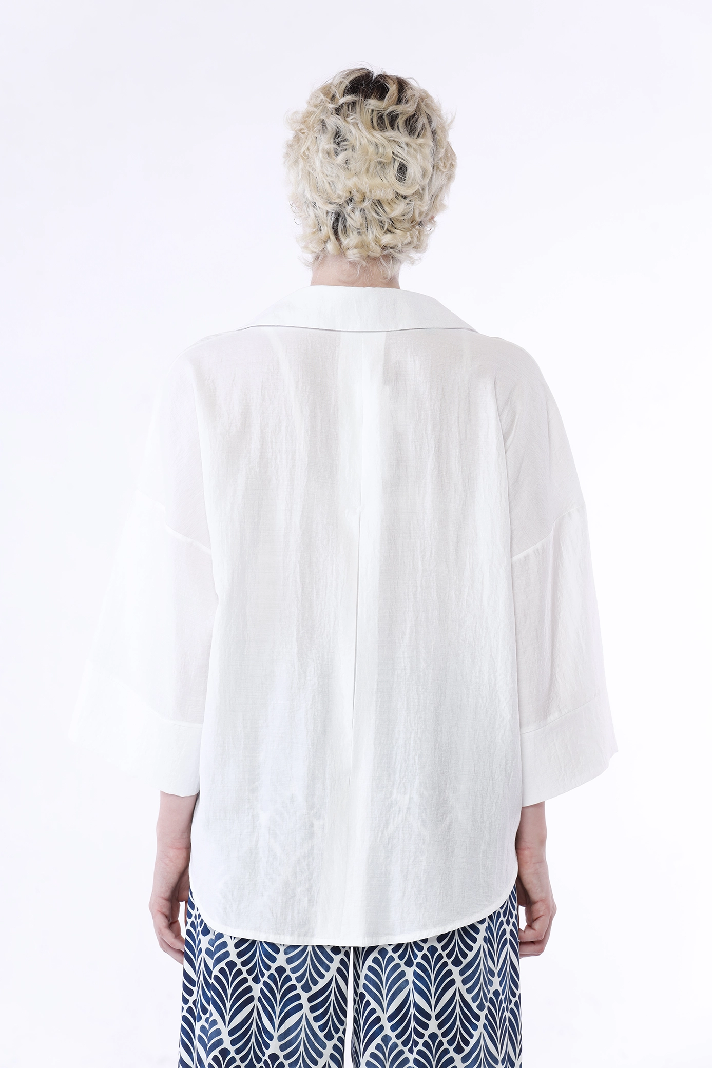 Camicia business woman, con bottoncini metallici e manica a tre quarti