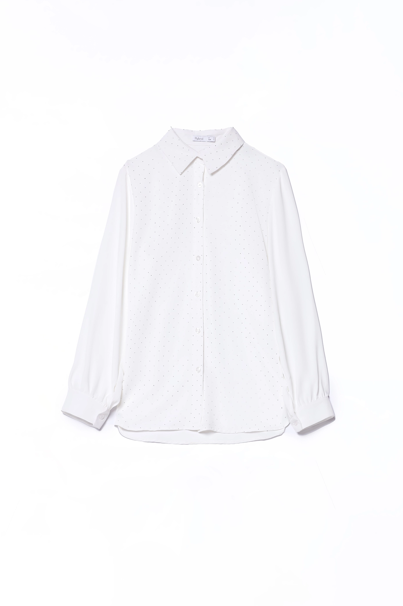Camicia elegante e versatile, di tendenza con strass e colletto classico
