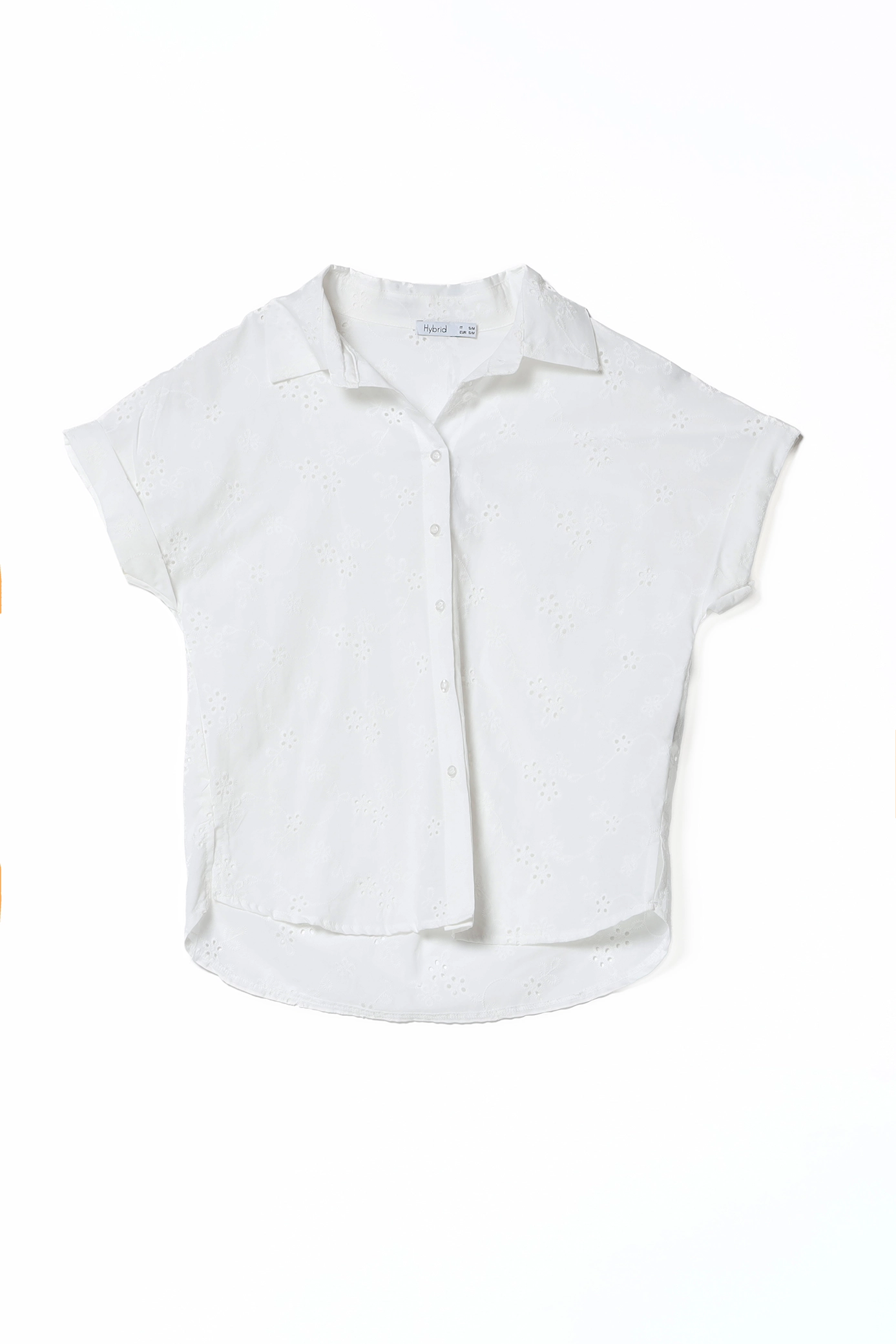 Camicia fresca sangallo, a manica corta, con colletto alla francese e spacchetti laterali