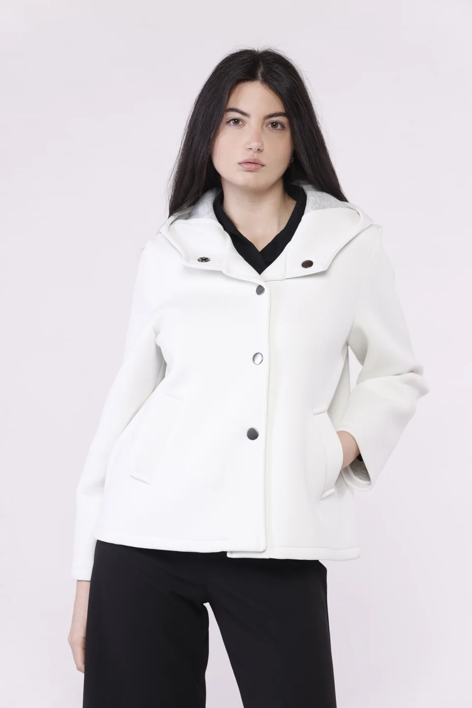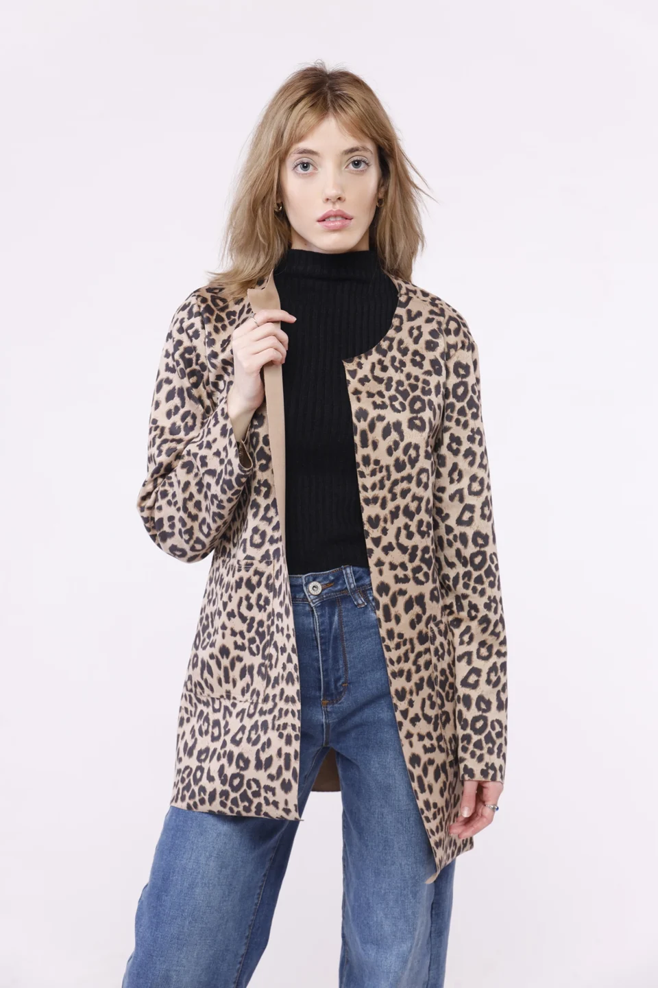 Cappotto lungo in dainetto, monopetto, con cucitura esterna orizzontale al petto e sulle maniche, con collo reverse e comode tasche laterali