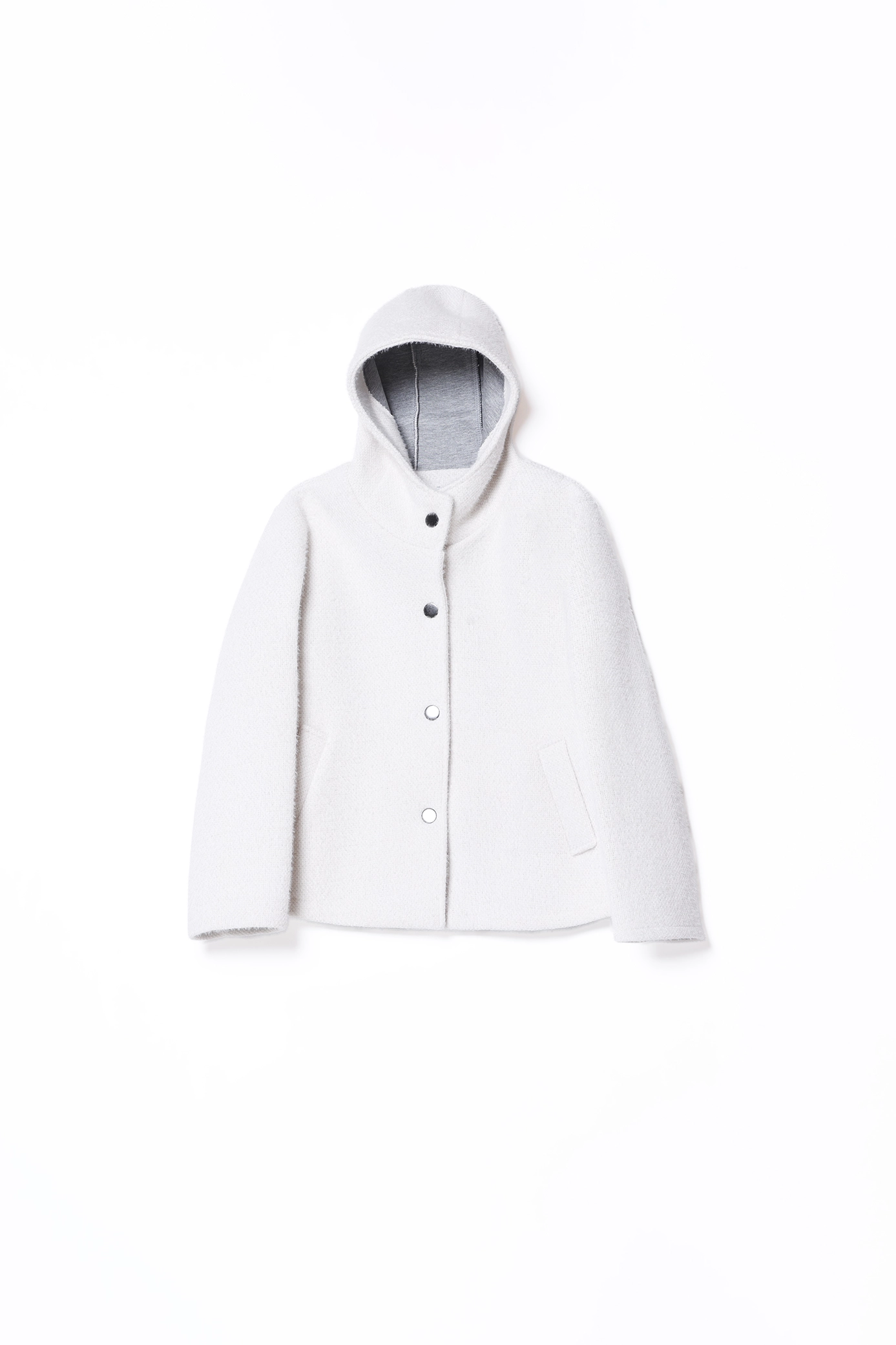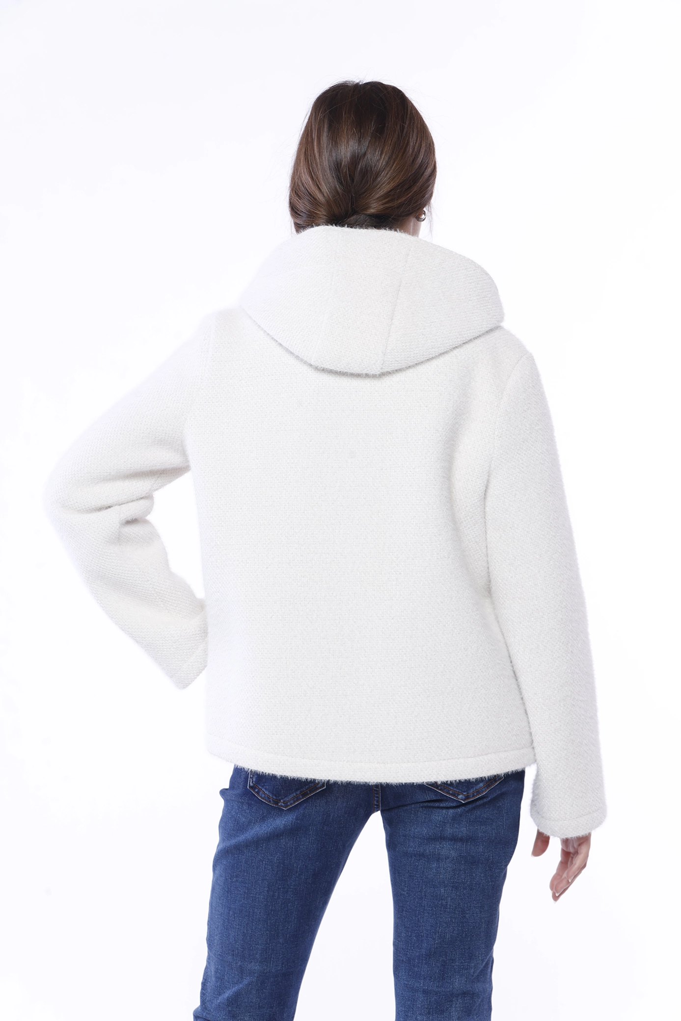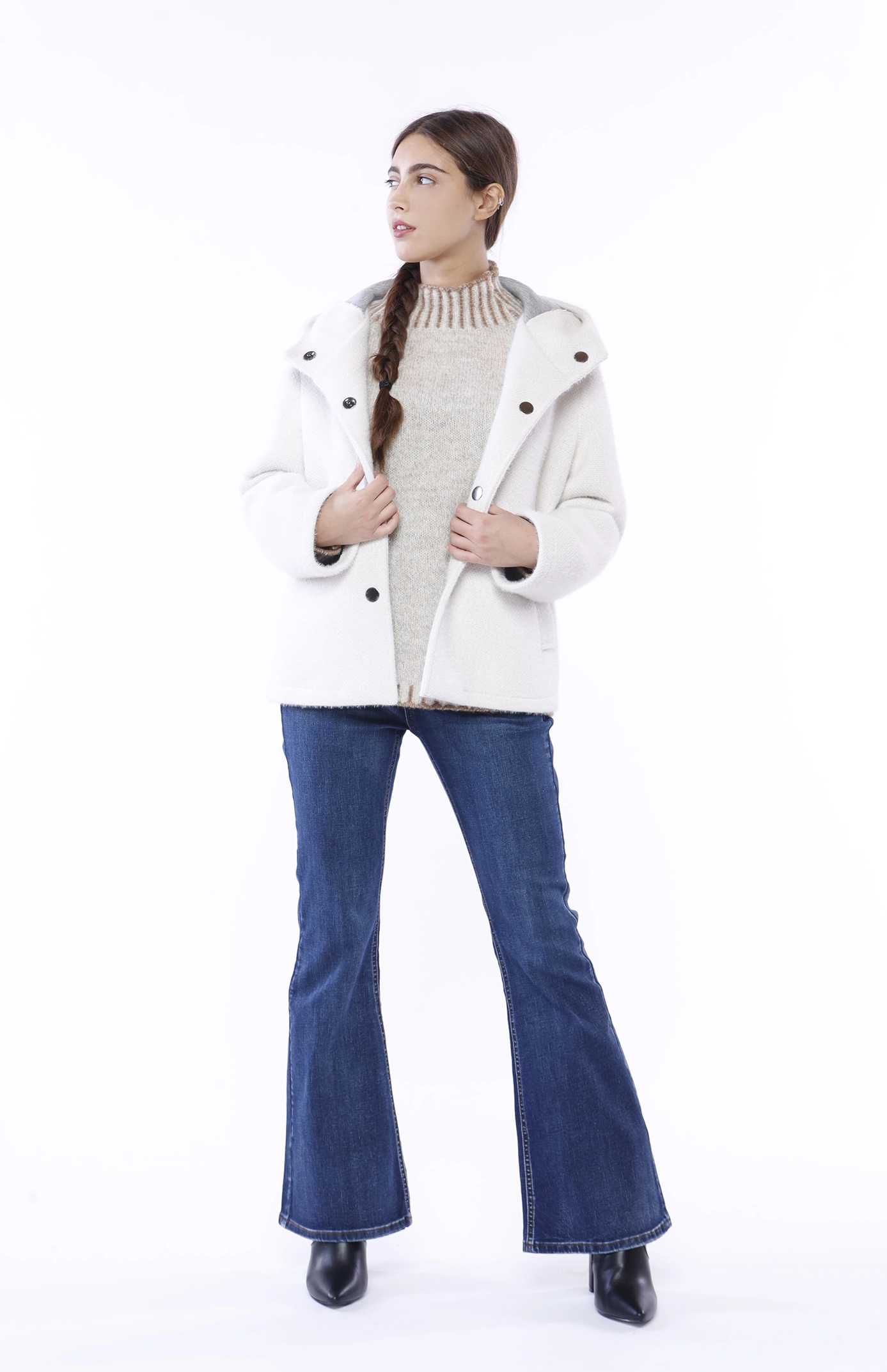 Softshell corto casual, con cappuccio, tasche e abbottonatura alta