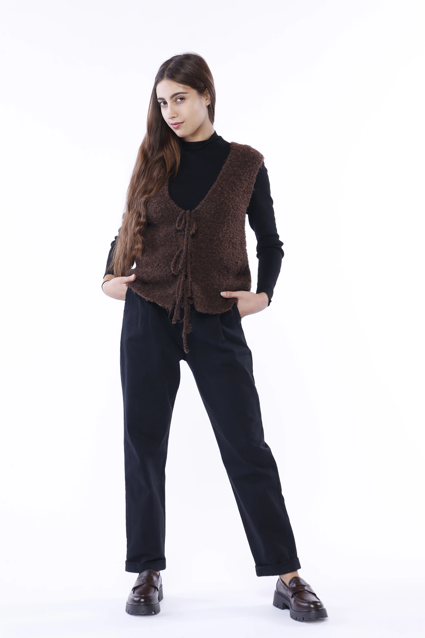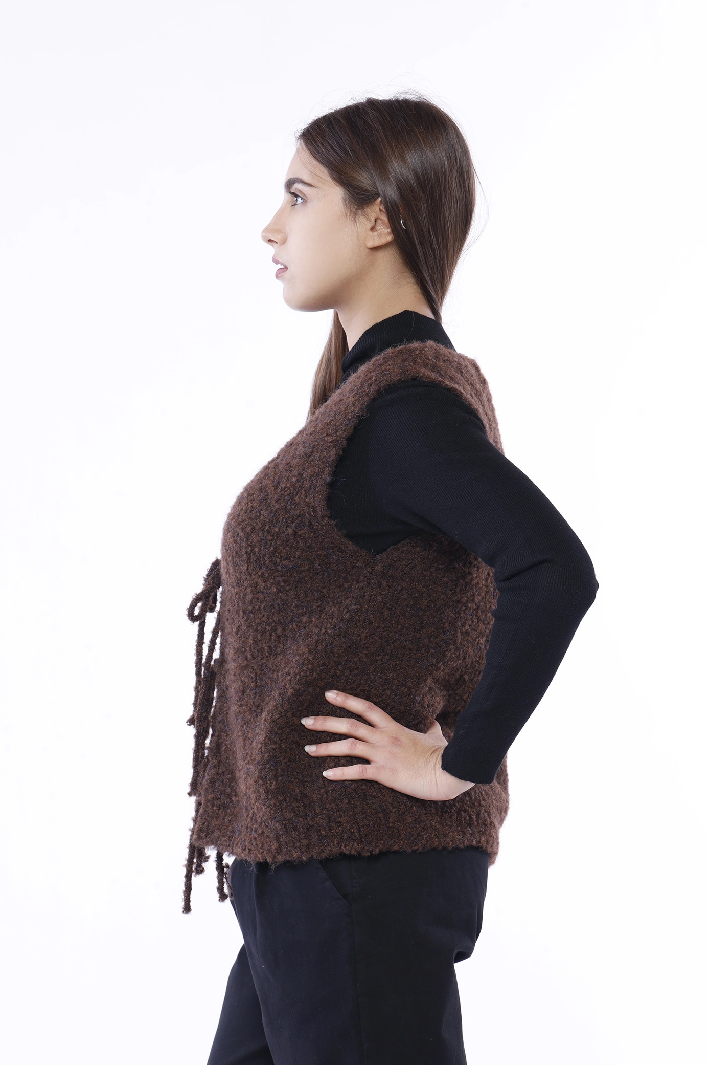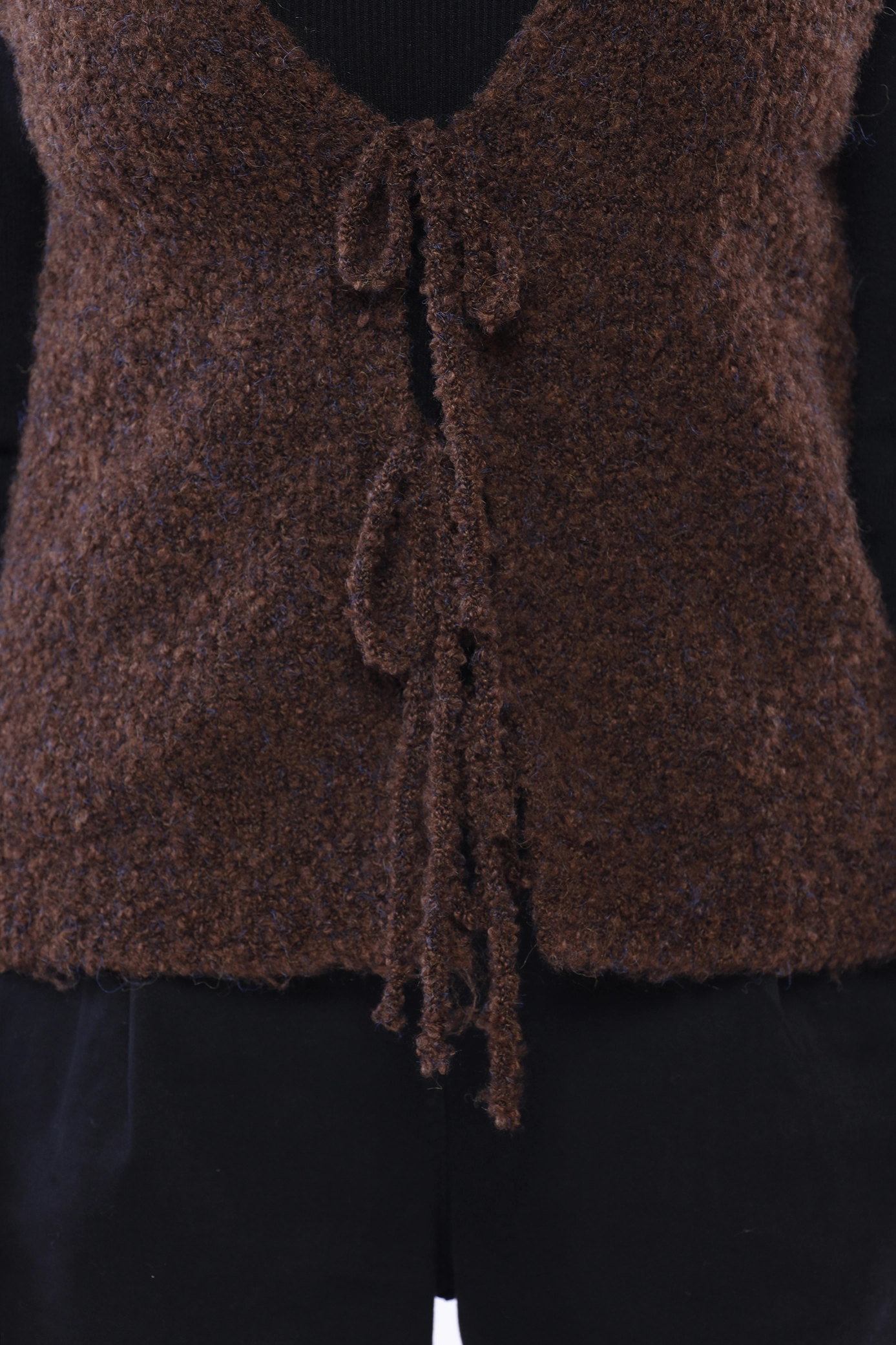 Gilet teddy con calda lana, chiuso da laccetto e scollato a V