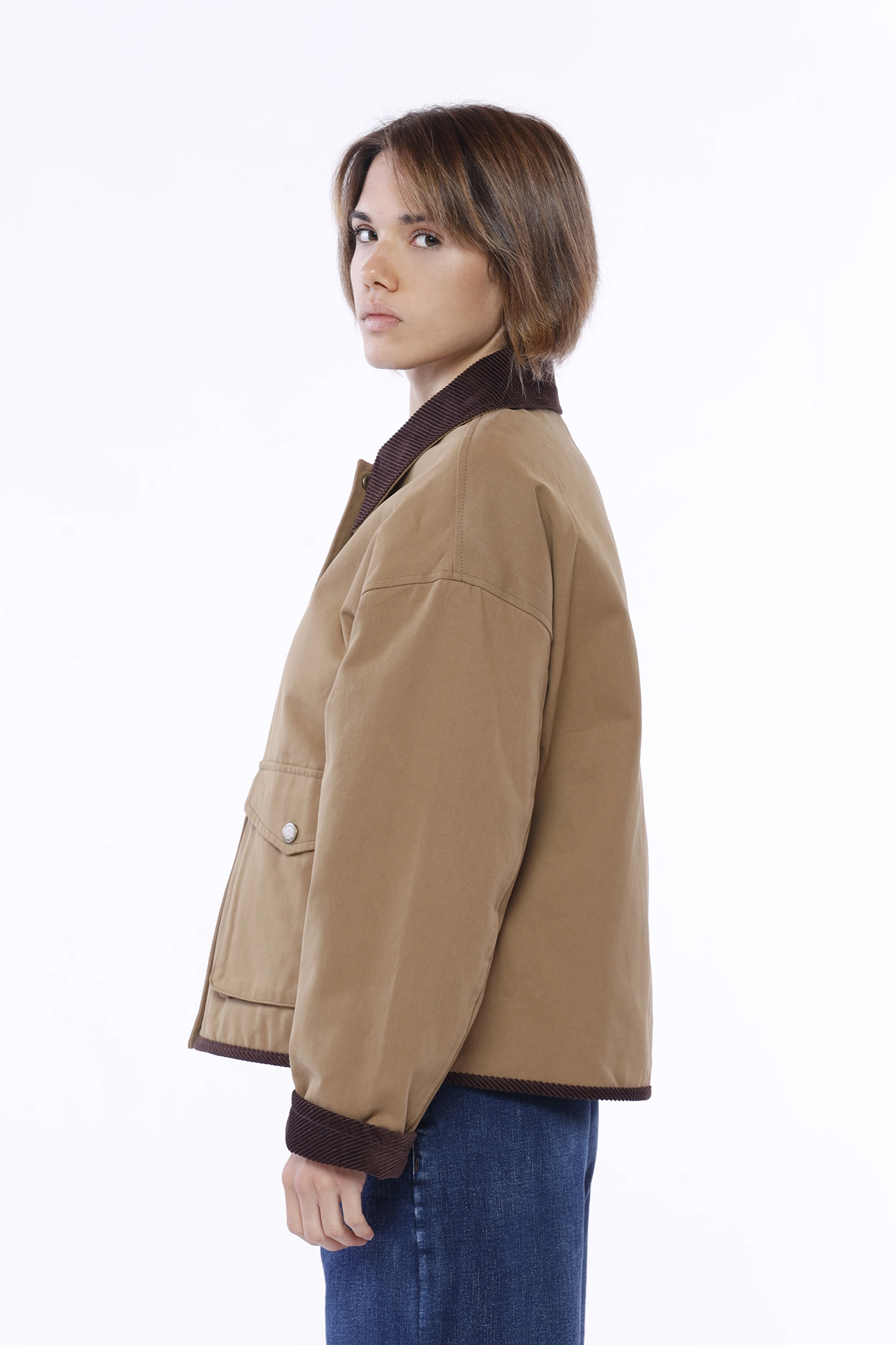 Giubbotto tipo parka con comode tasche e doppia chiusura a bottoni e cerniera interna.