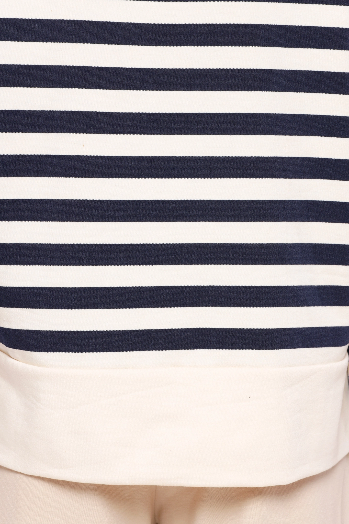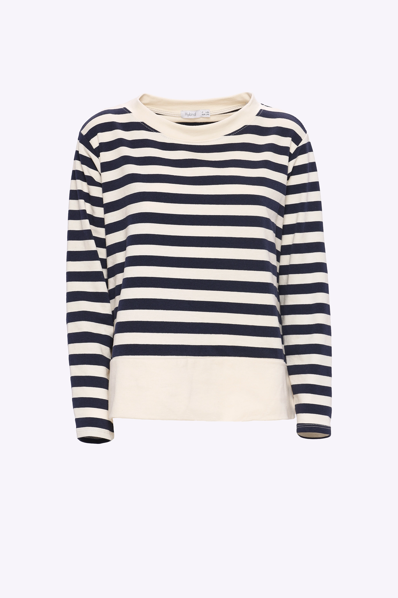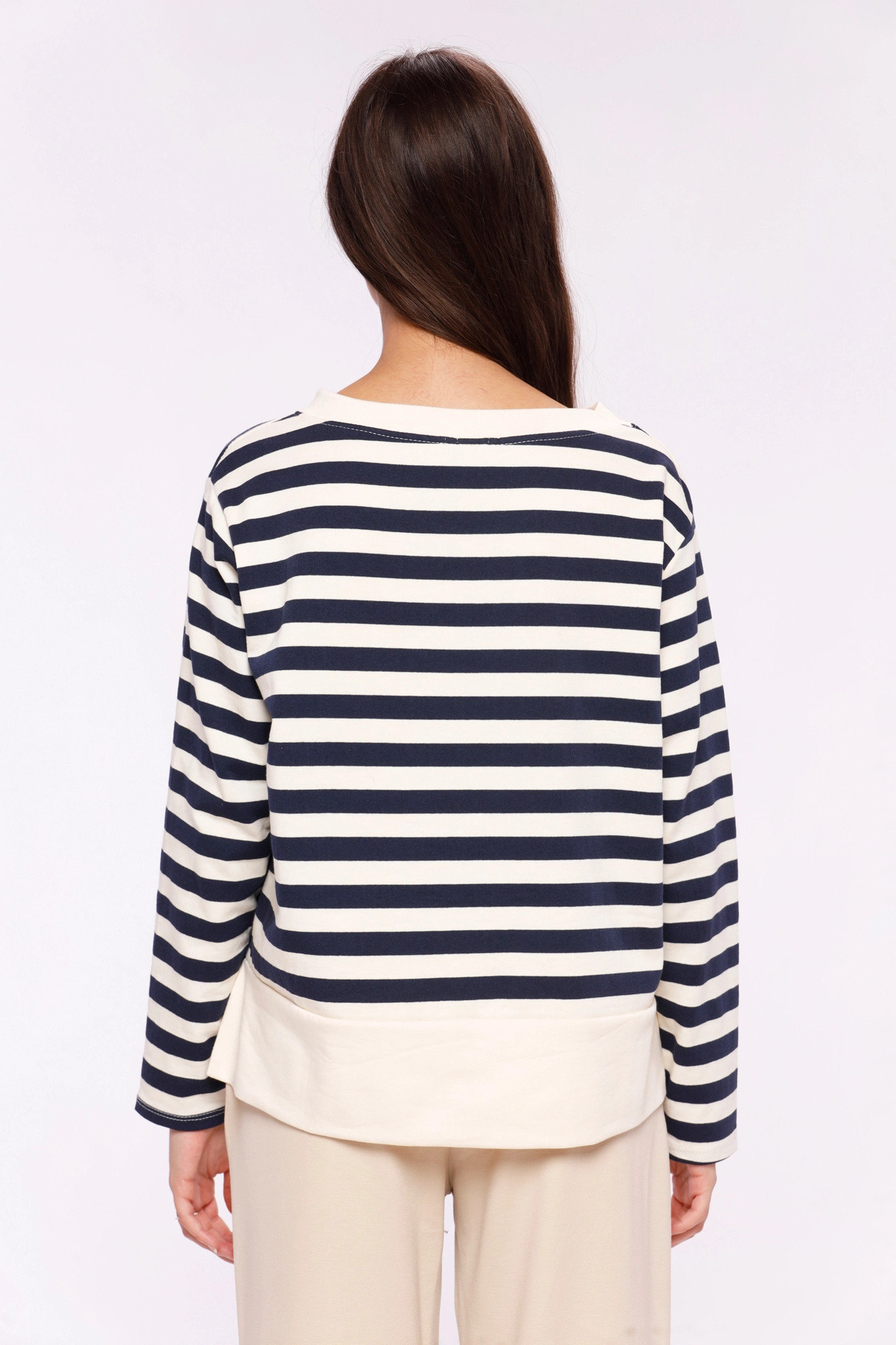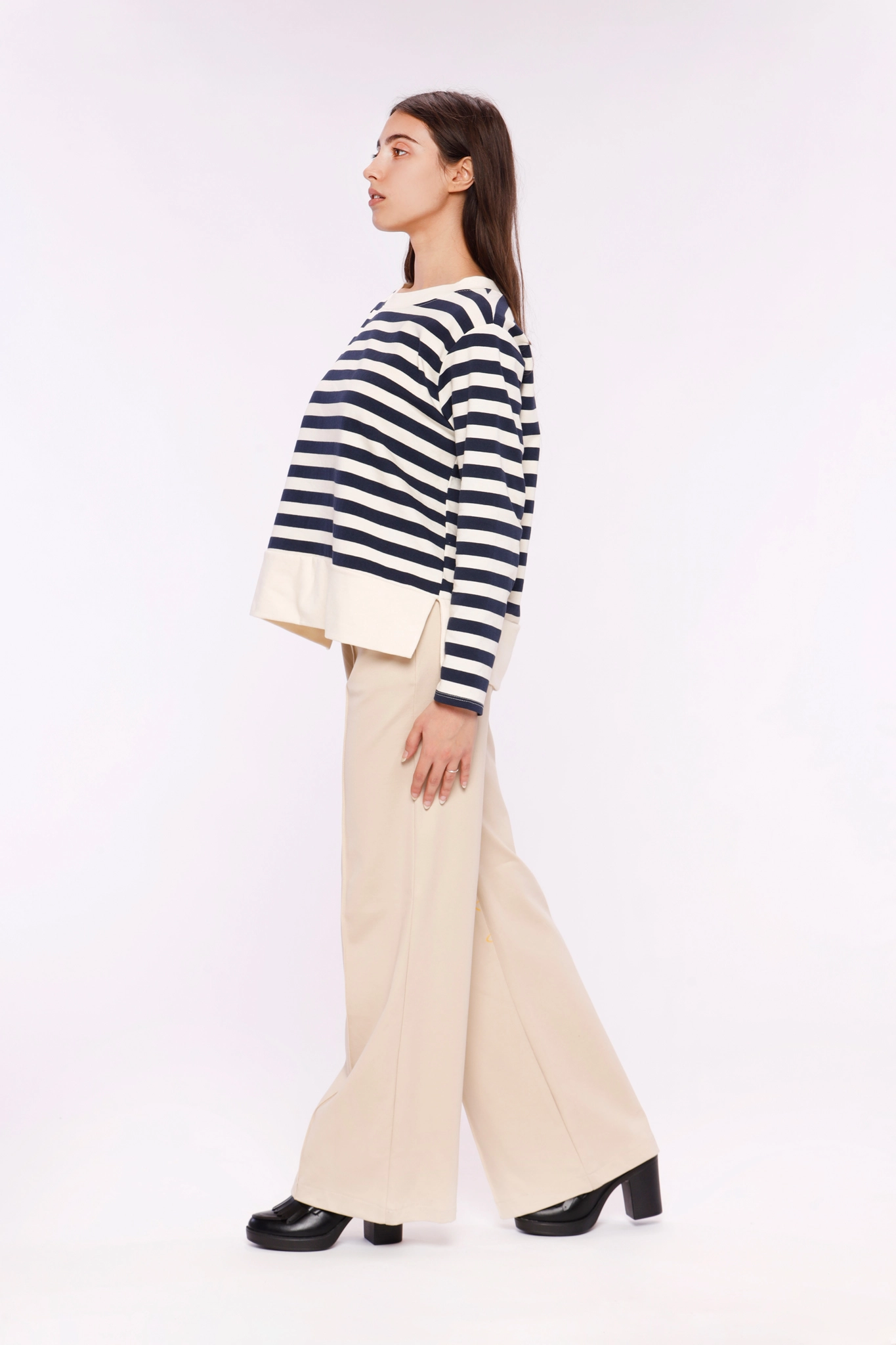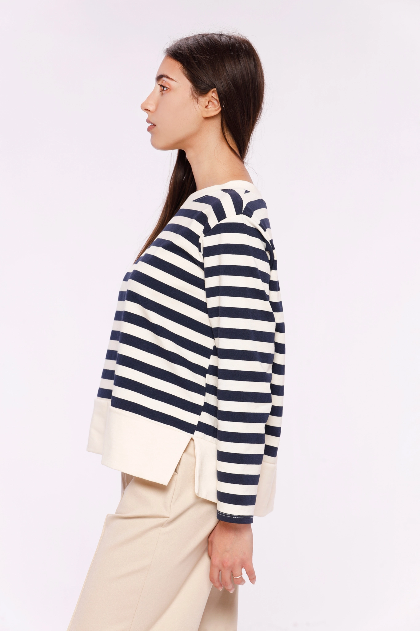 Maglia casual di tendenza con scollo a giro, a righe spesse, con bordo alto e spacchetti laterali