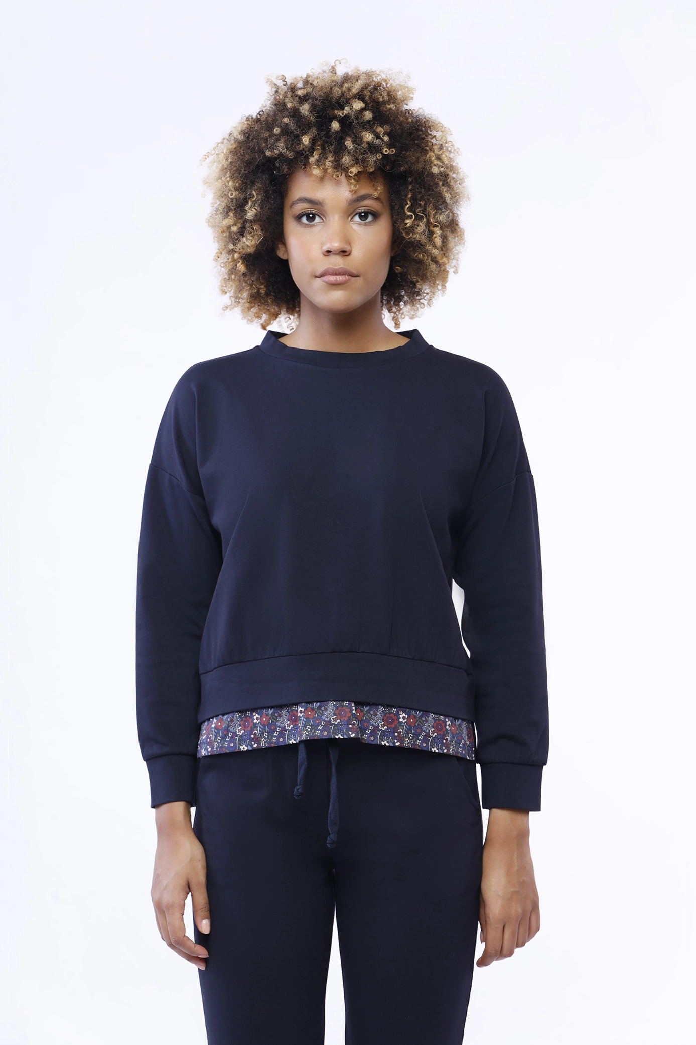 Felpa con dettaglio doppio orlo sul fondo, pratica e comoda con scollo a giro ampio