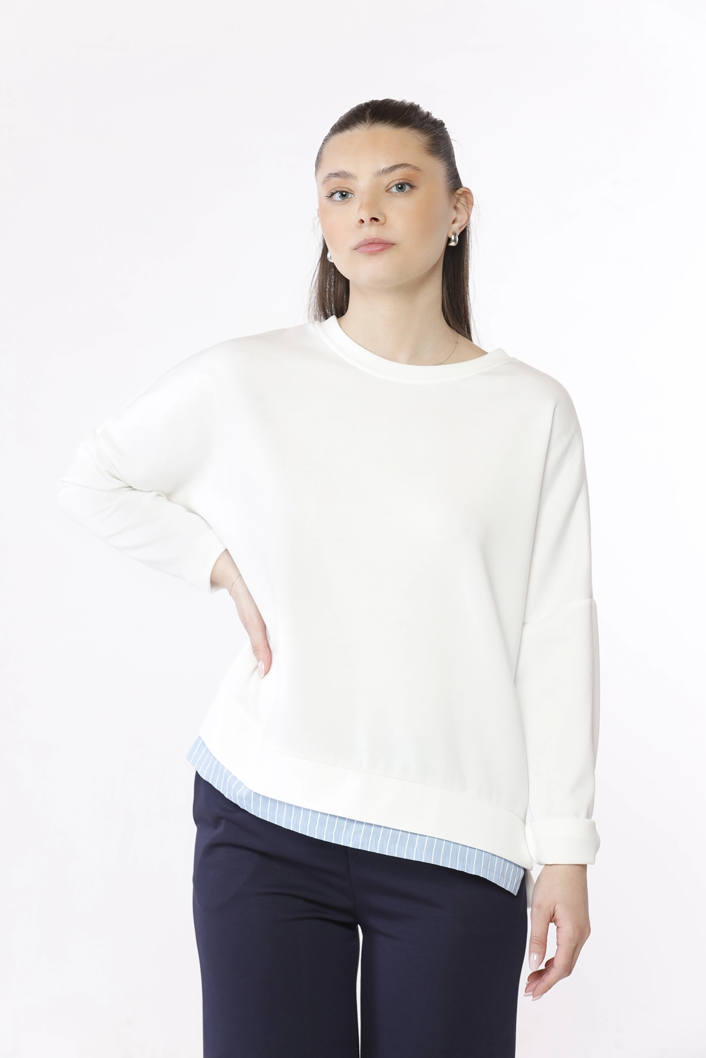 Maglia casual, con inserto rigato al fondo e spaccetti laterali