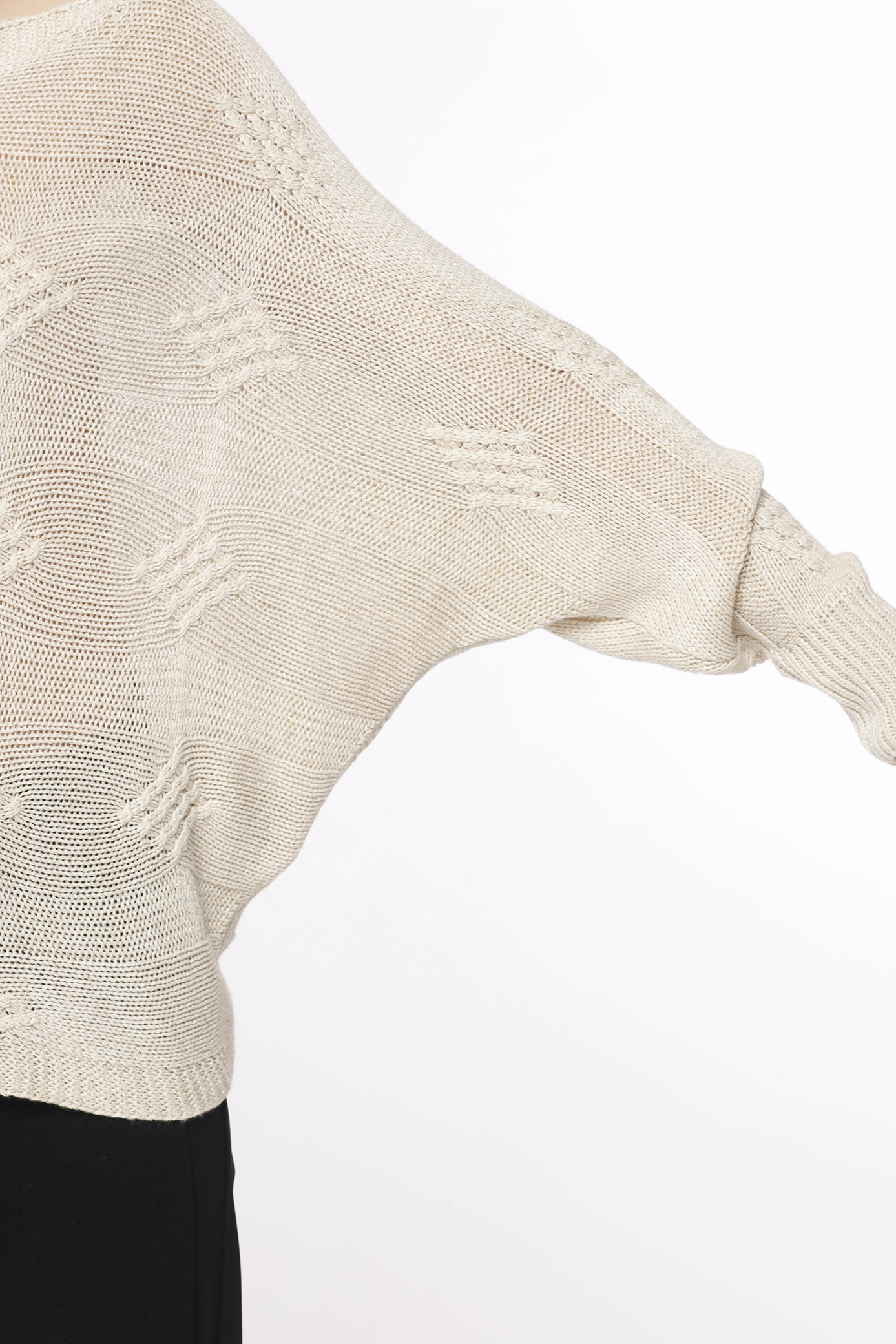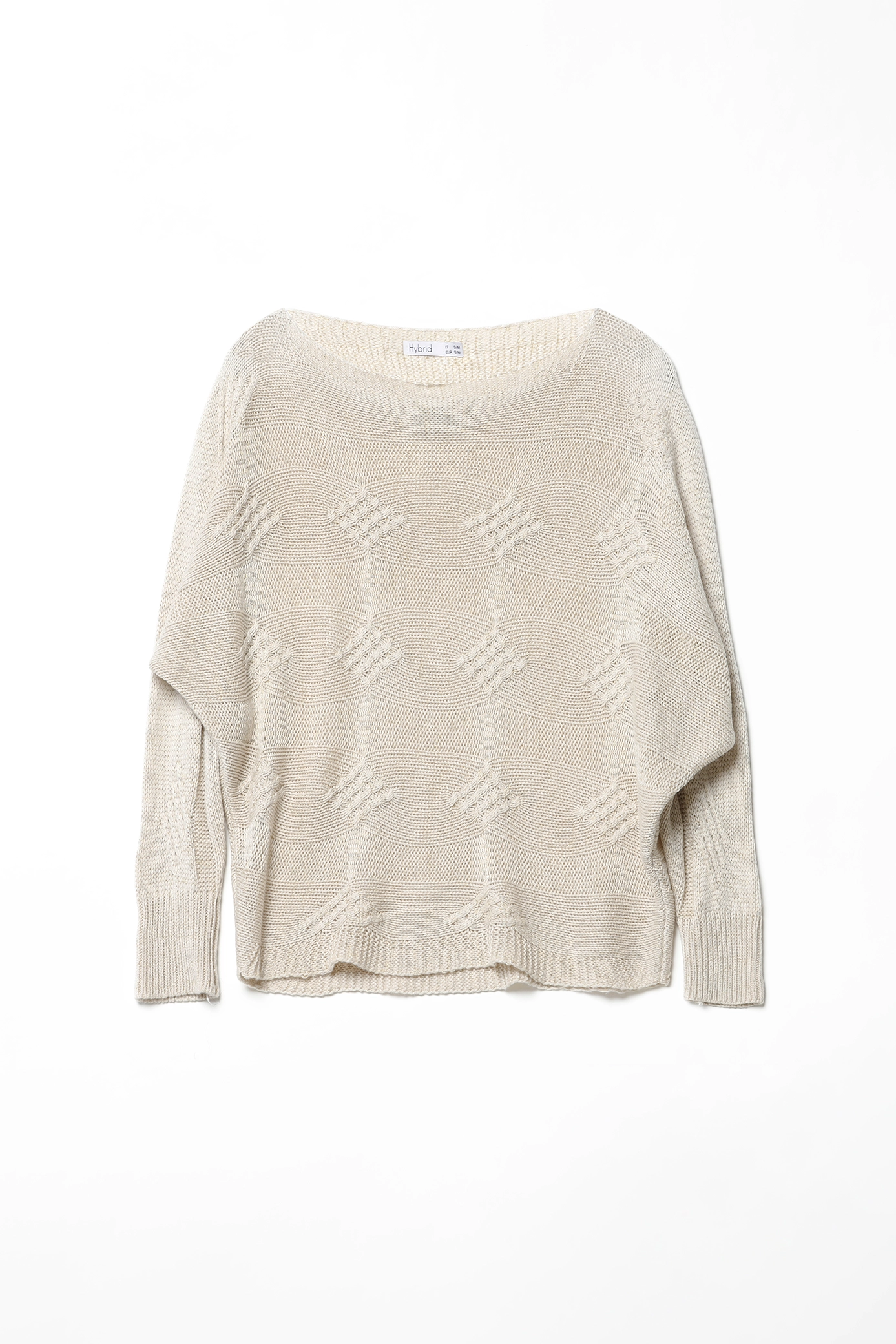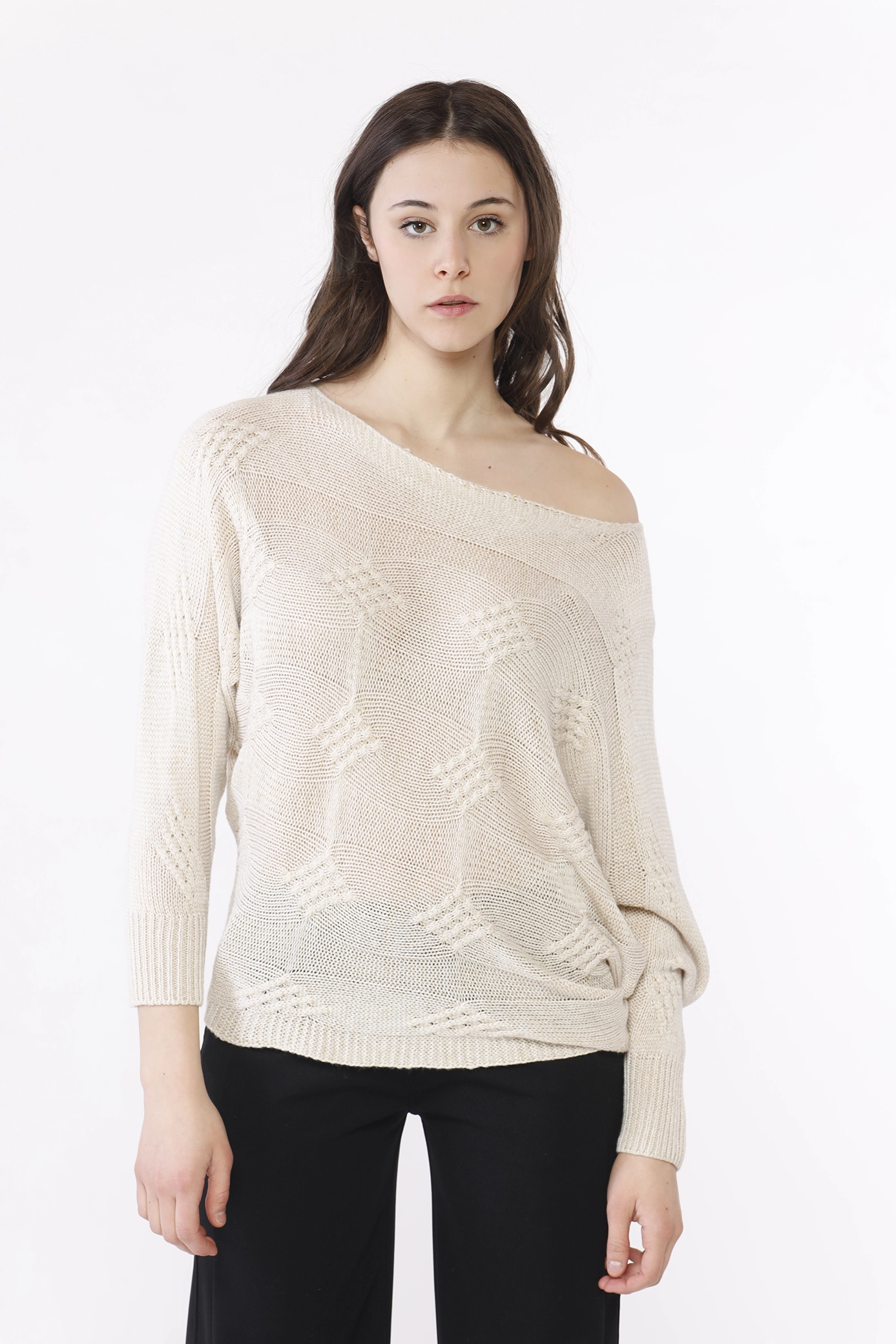 MAGLIA casual laminata con scollo a barchetta e graziosi ricami orizzontali in rilievo