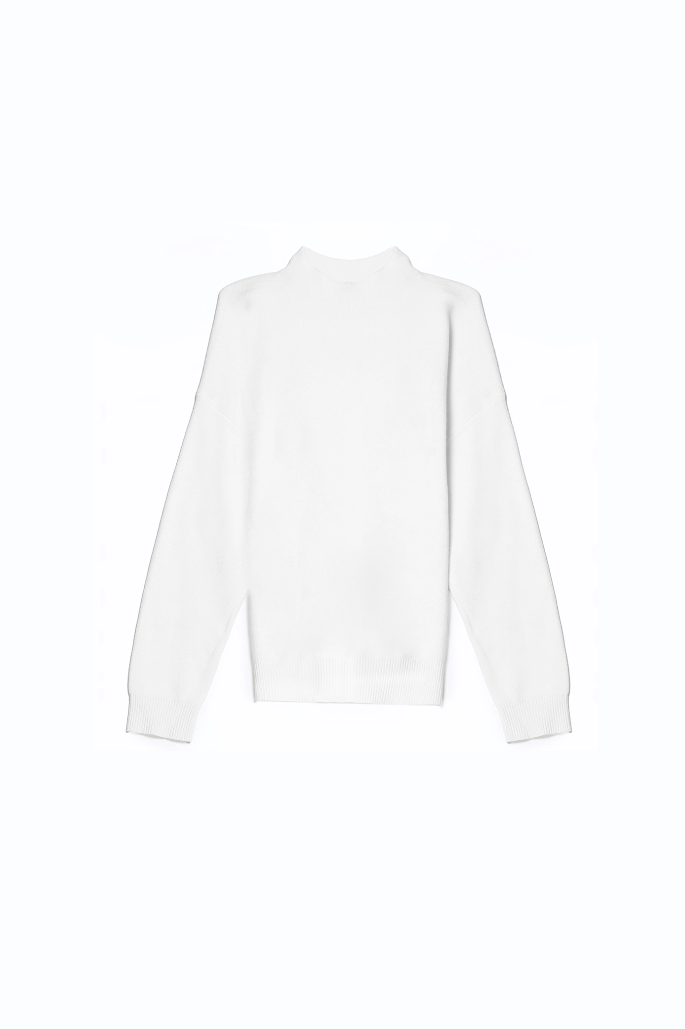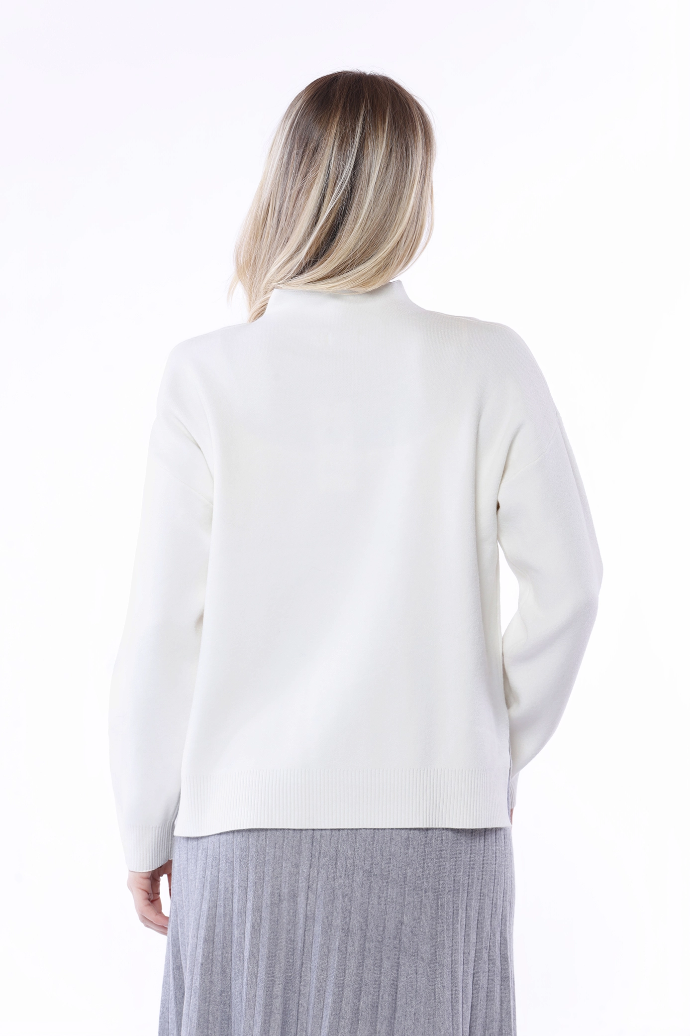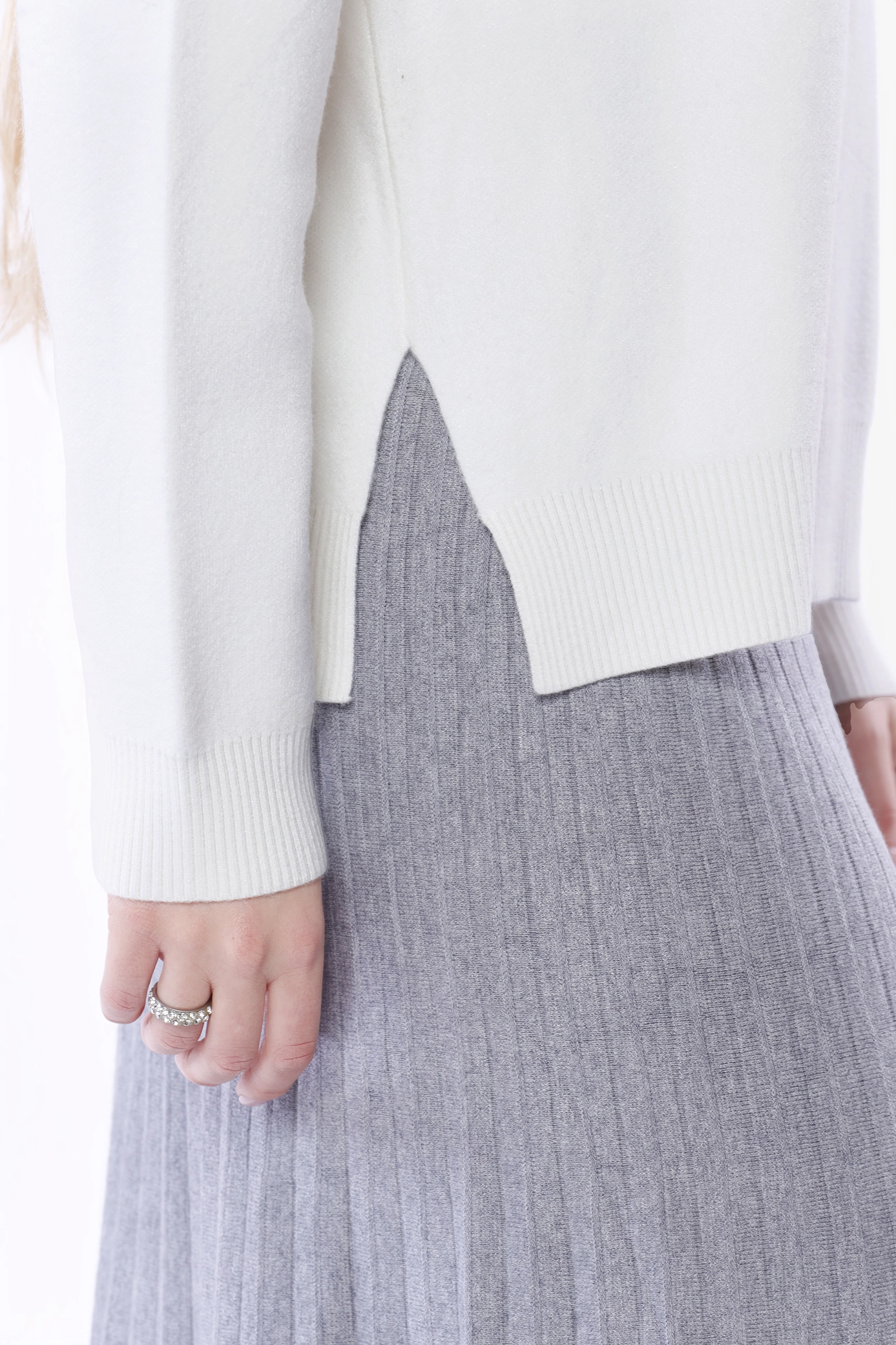 Maglia corta con girocollo alto, orli a costine e spacchetti laterali
