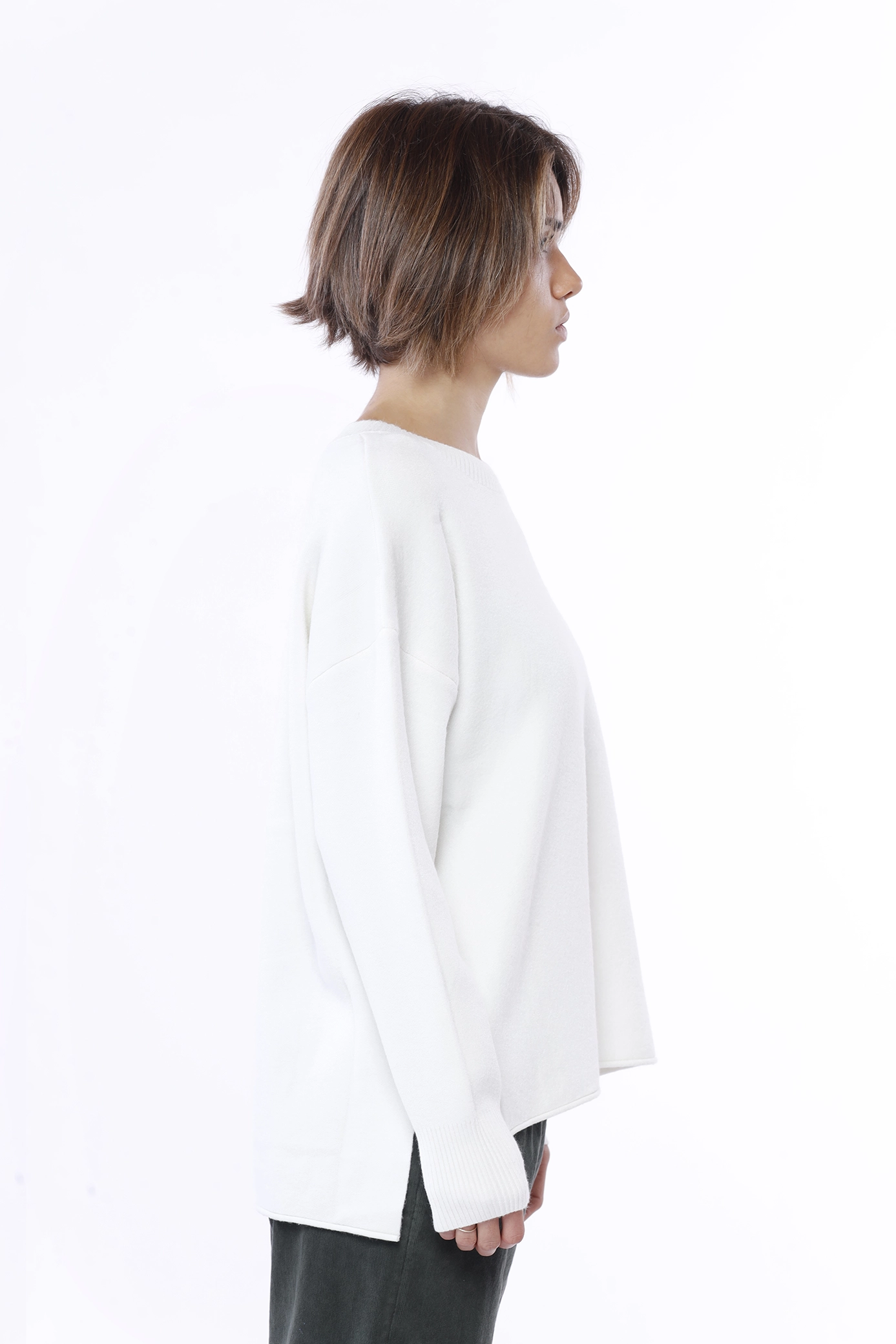 Maglia everyday a manica lunga, con spacchetti laterali e orli a costine