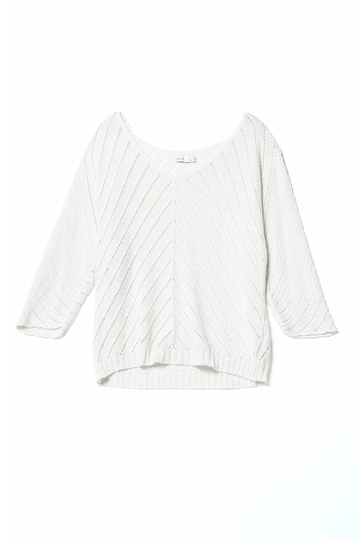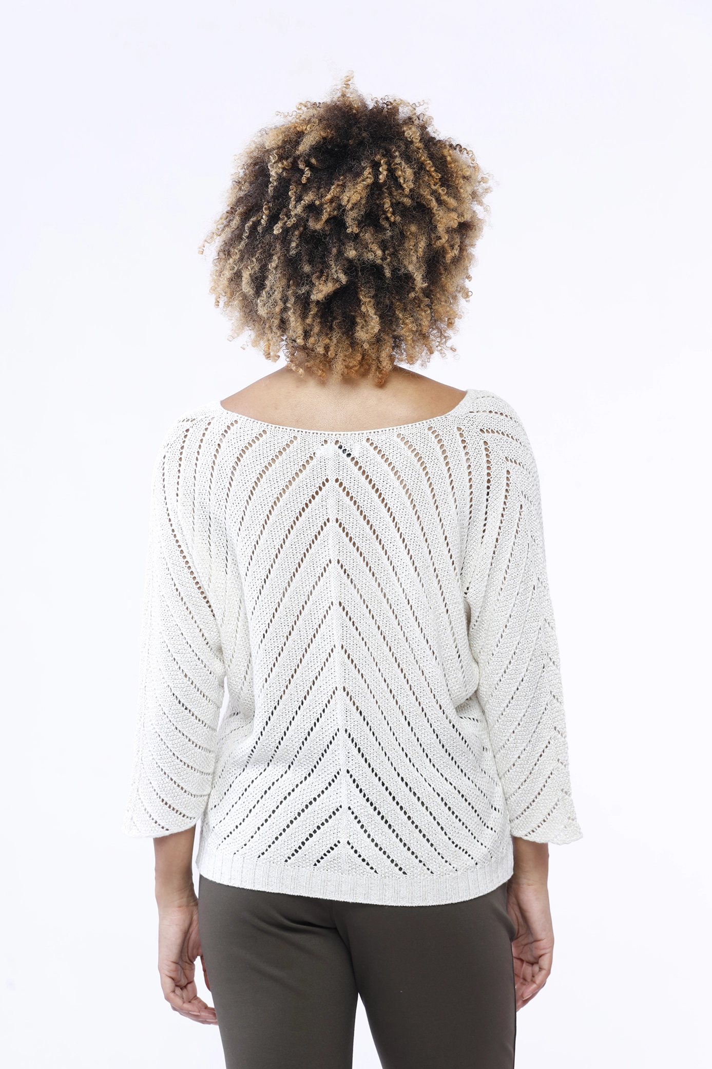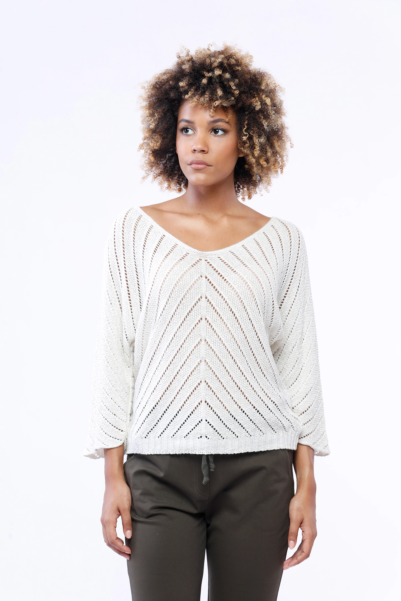 Maglia oversize motivo trafori diagonali, laminata, con orli a coste e ampio scollo a V