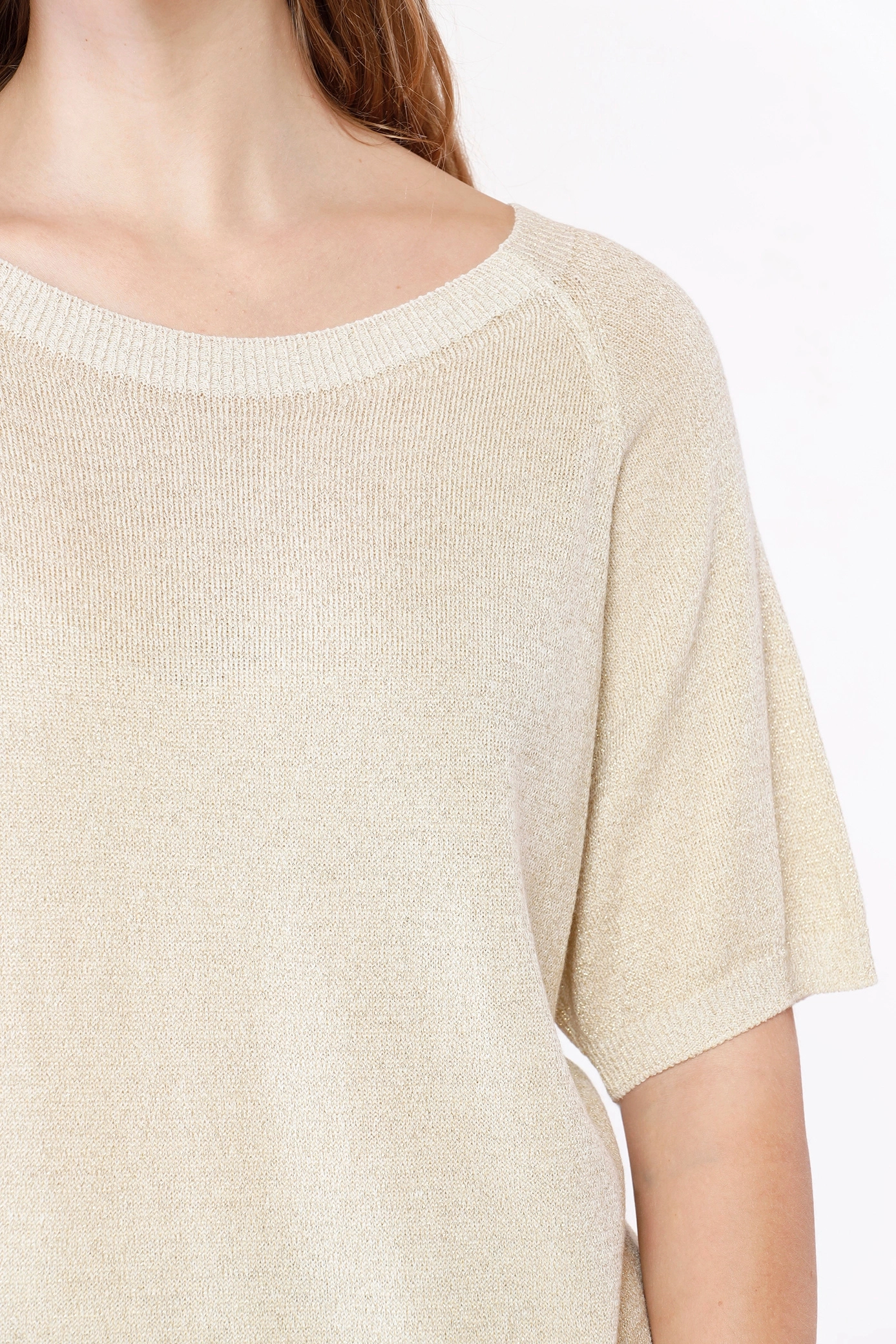 Maglia laminata fresche sere d’estate, con scollo a barca e manica corta