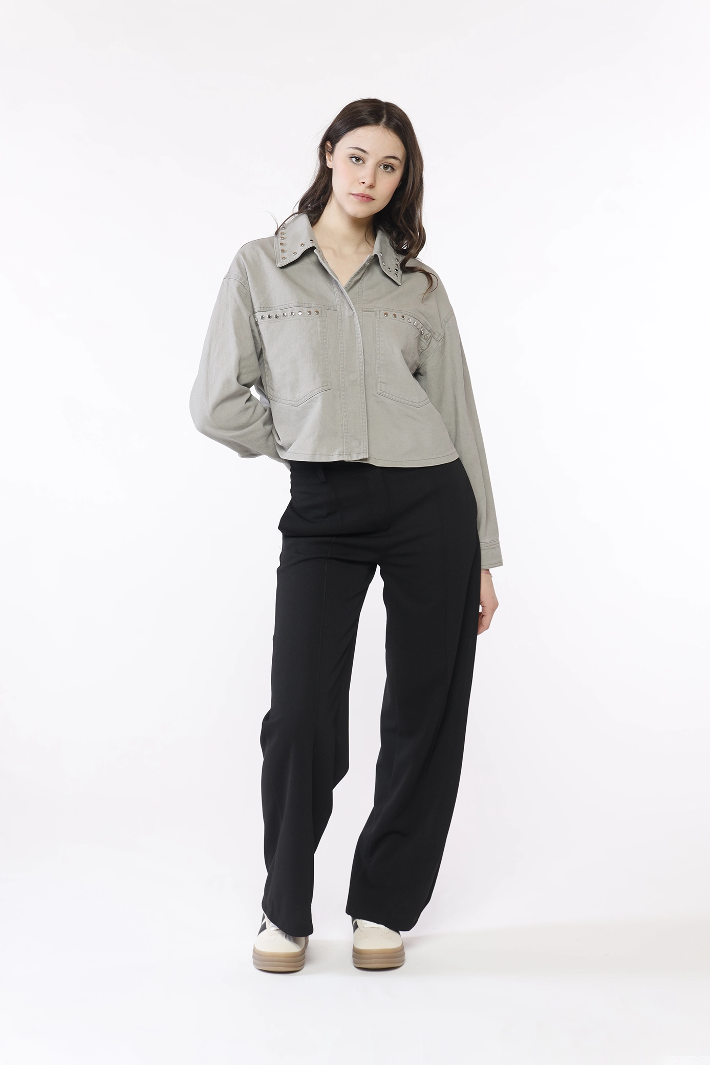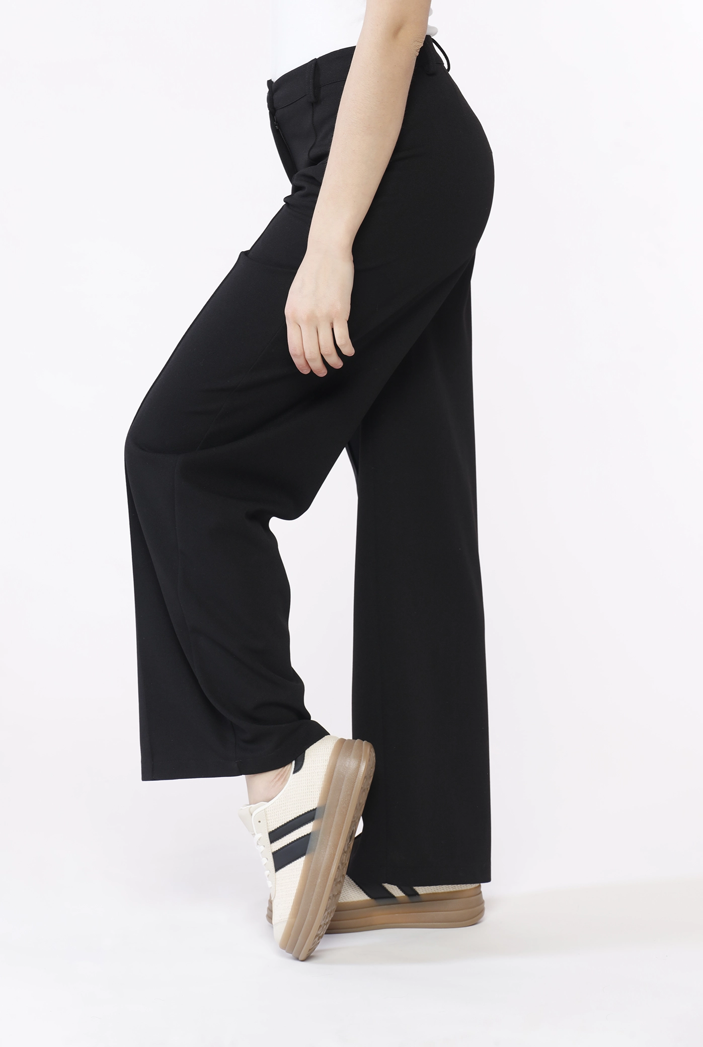 Pantalone a palazzo, con chiusura a bottone e passanti alla cintura