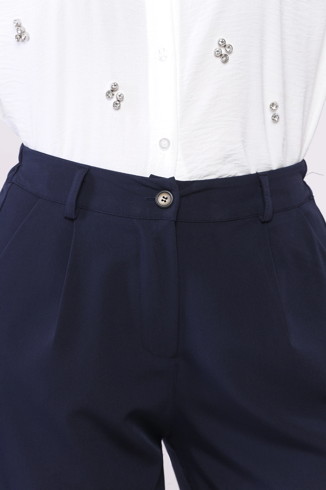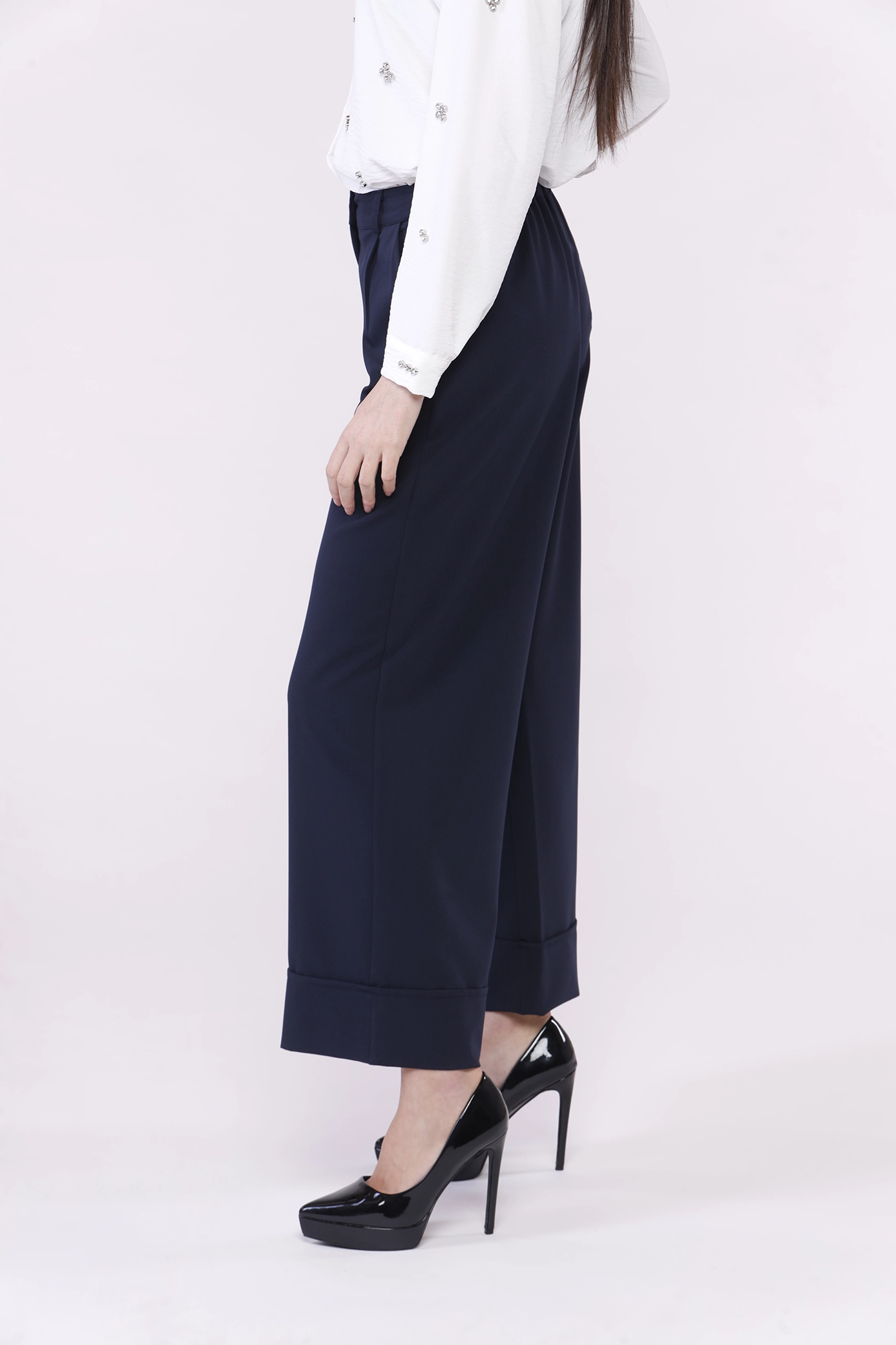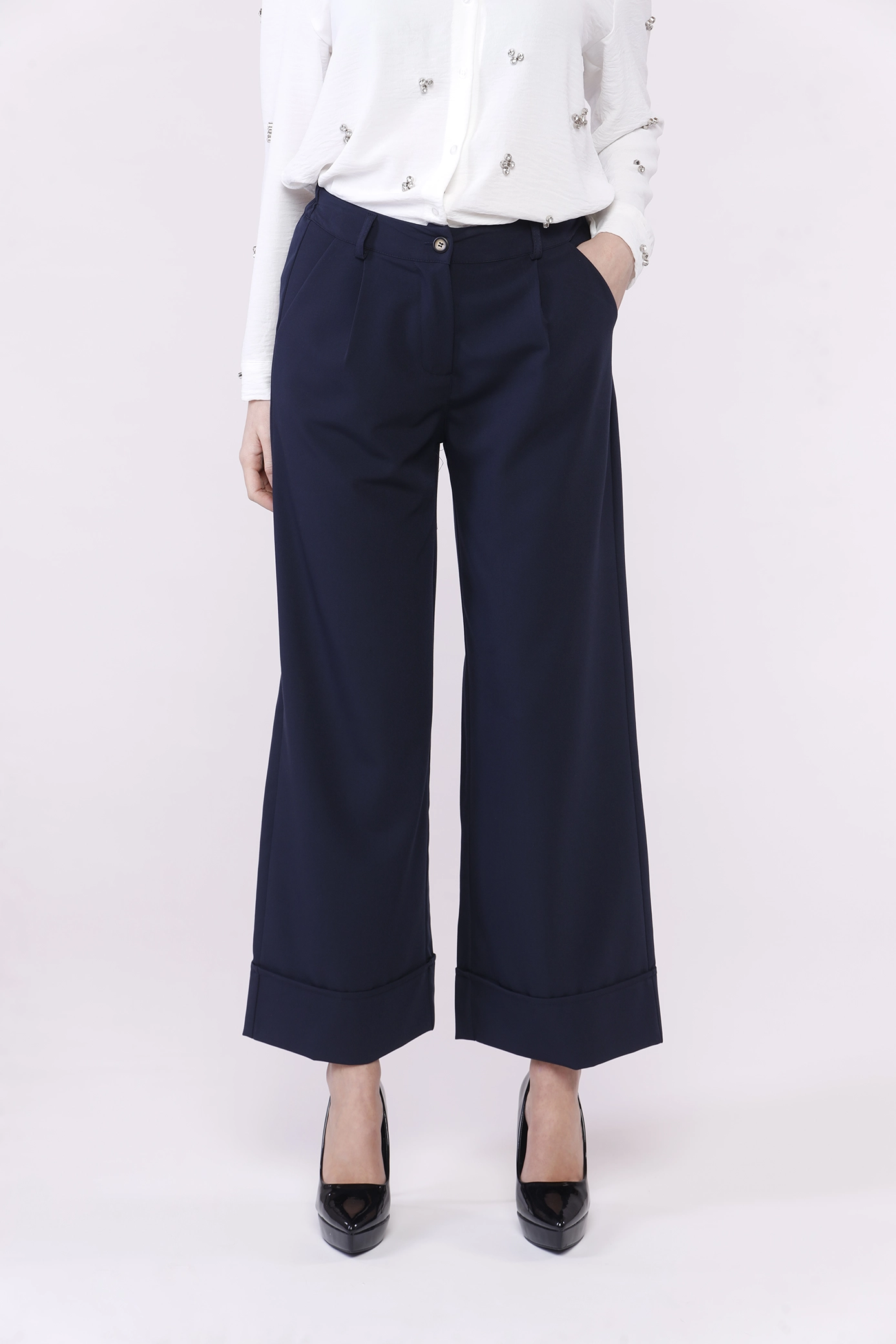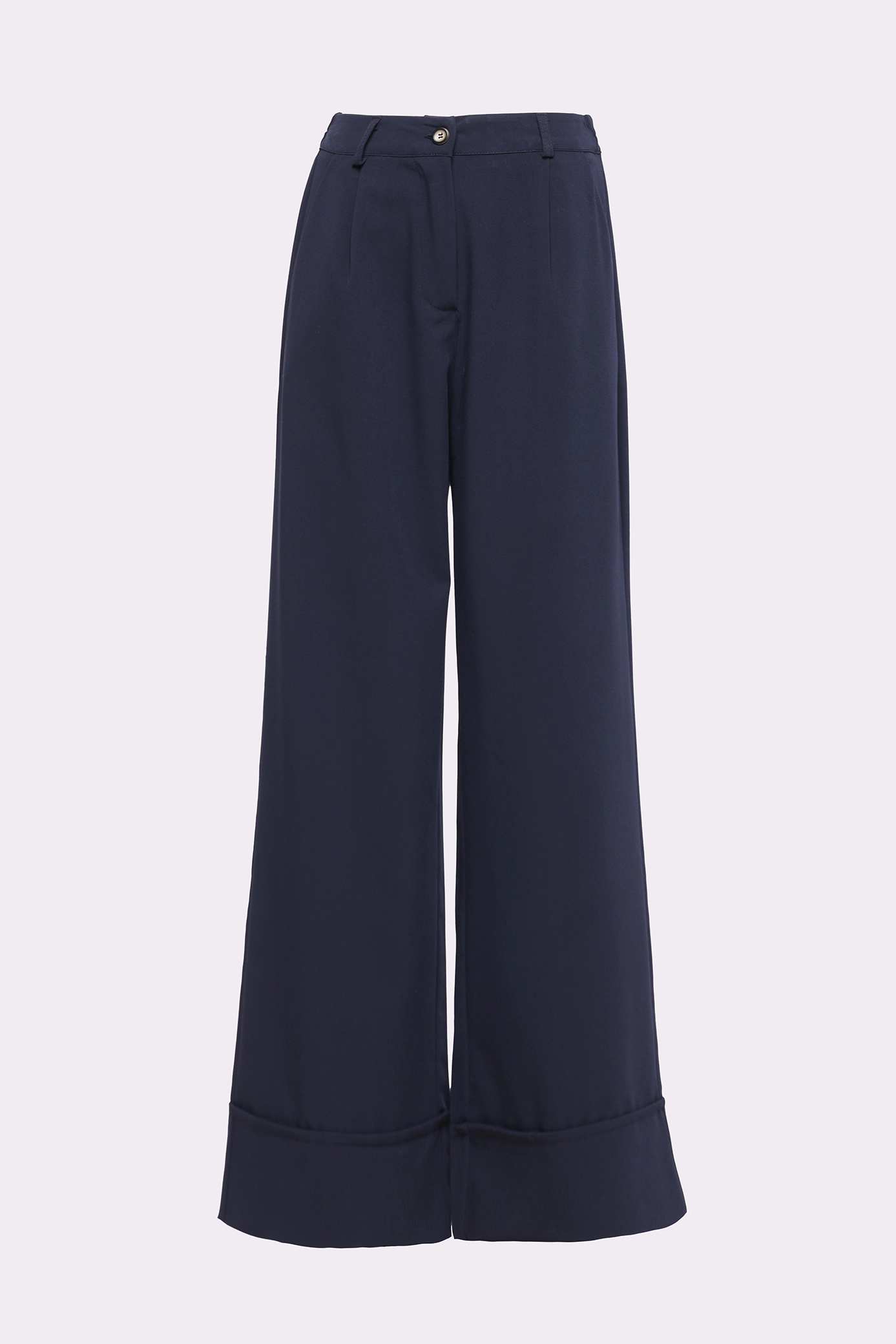 Pantalone a palazzo, con tasche, graziose pence verticali e passanti alla cintura