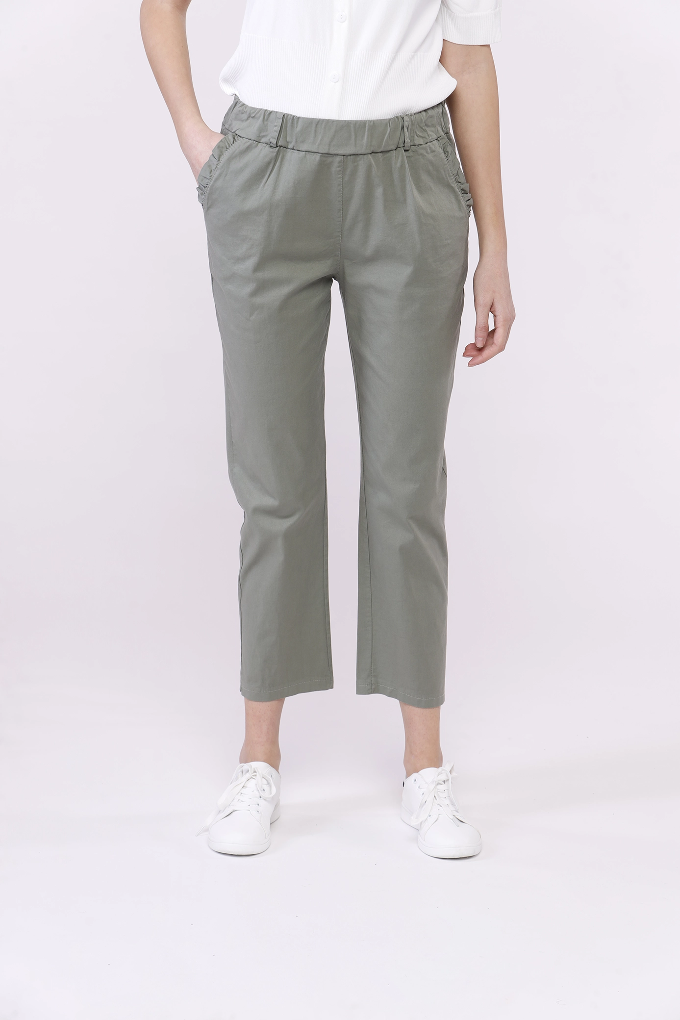 Pantalone classico con eleganti taschine arricciate e comodo elastico di chiusura