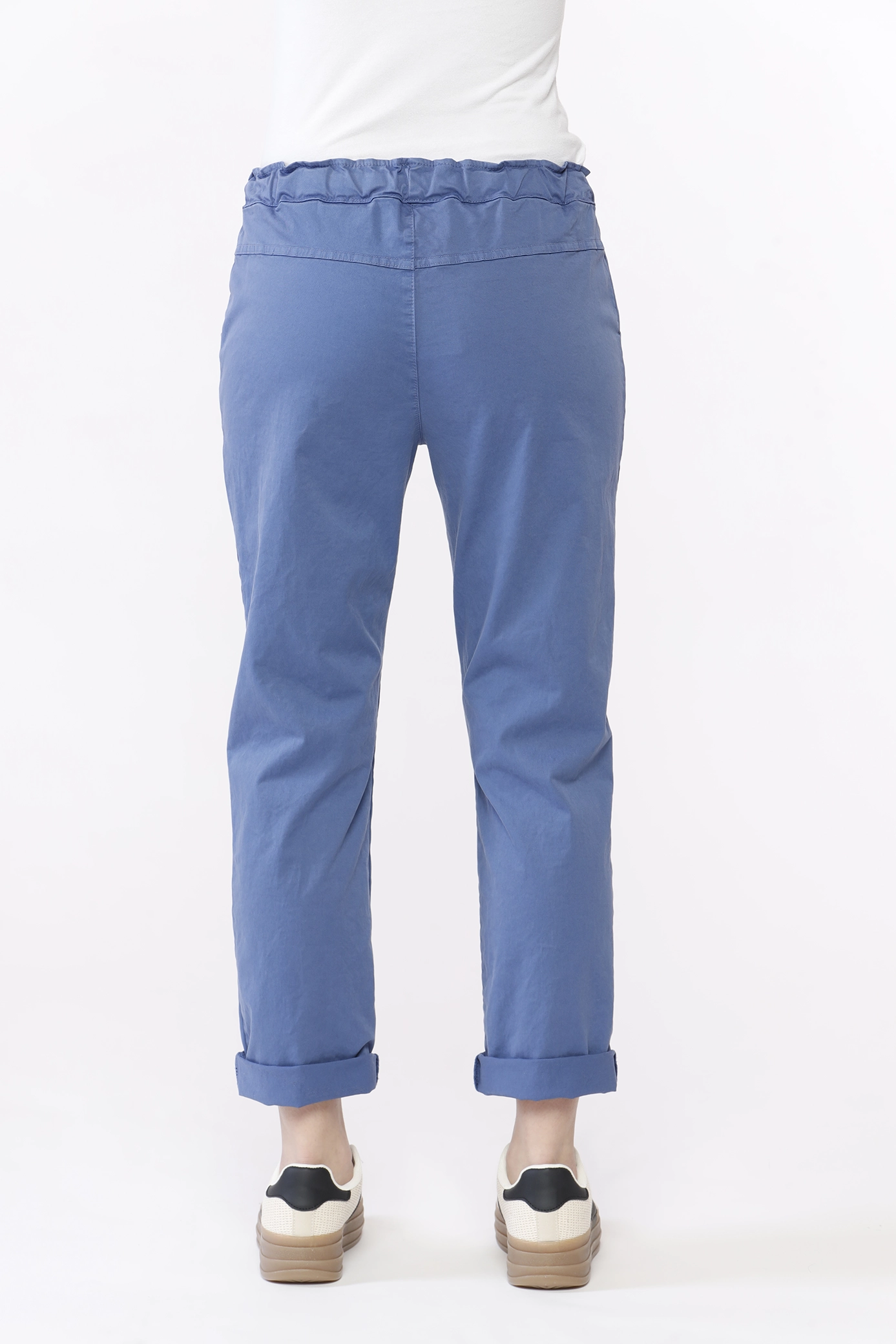 Pantalone casual in morbido cotone con cordino in vita e risvolti alle caviglie