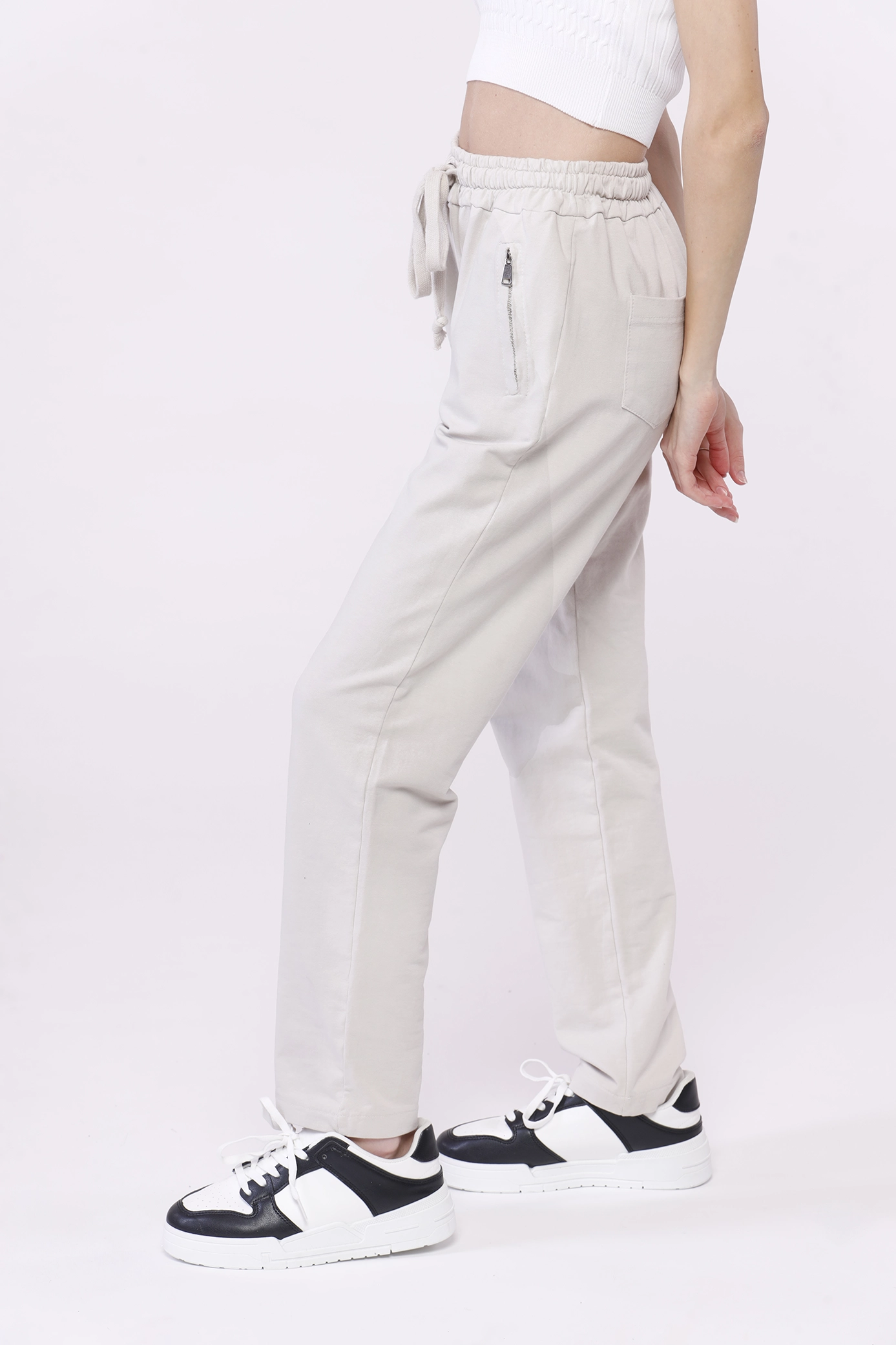 PANTALONE con chiusura a elastico e laccetto con tasche con cerniera metallica e risvolto alle caviglie