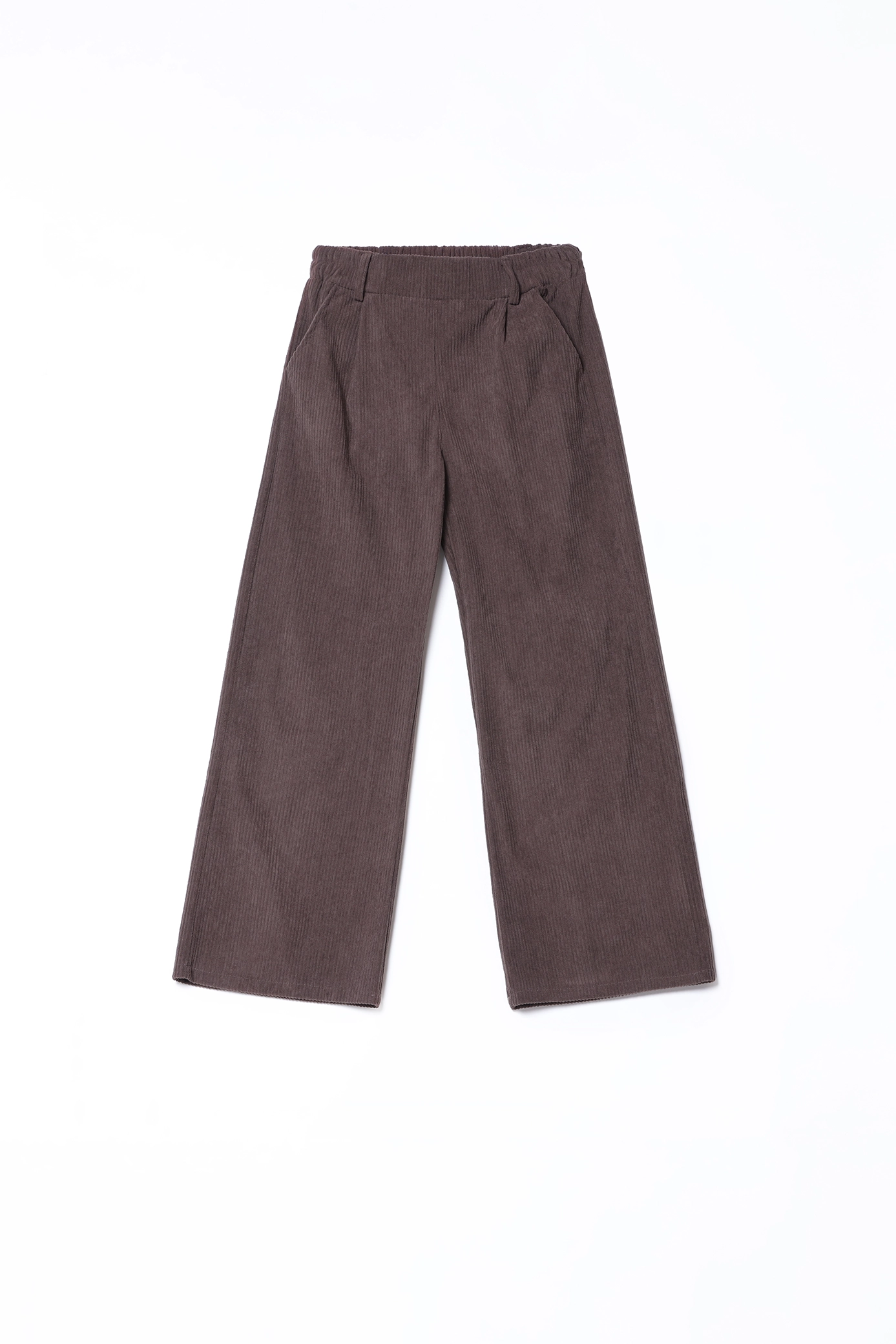 Pantalone in velluto a coste, wide leg, con comode tasche laterali e chiusura a elastico con passanti alla cintura