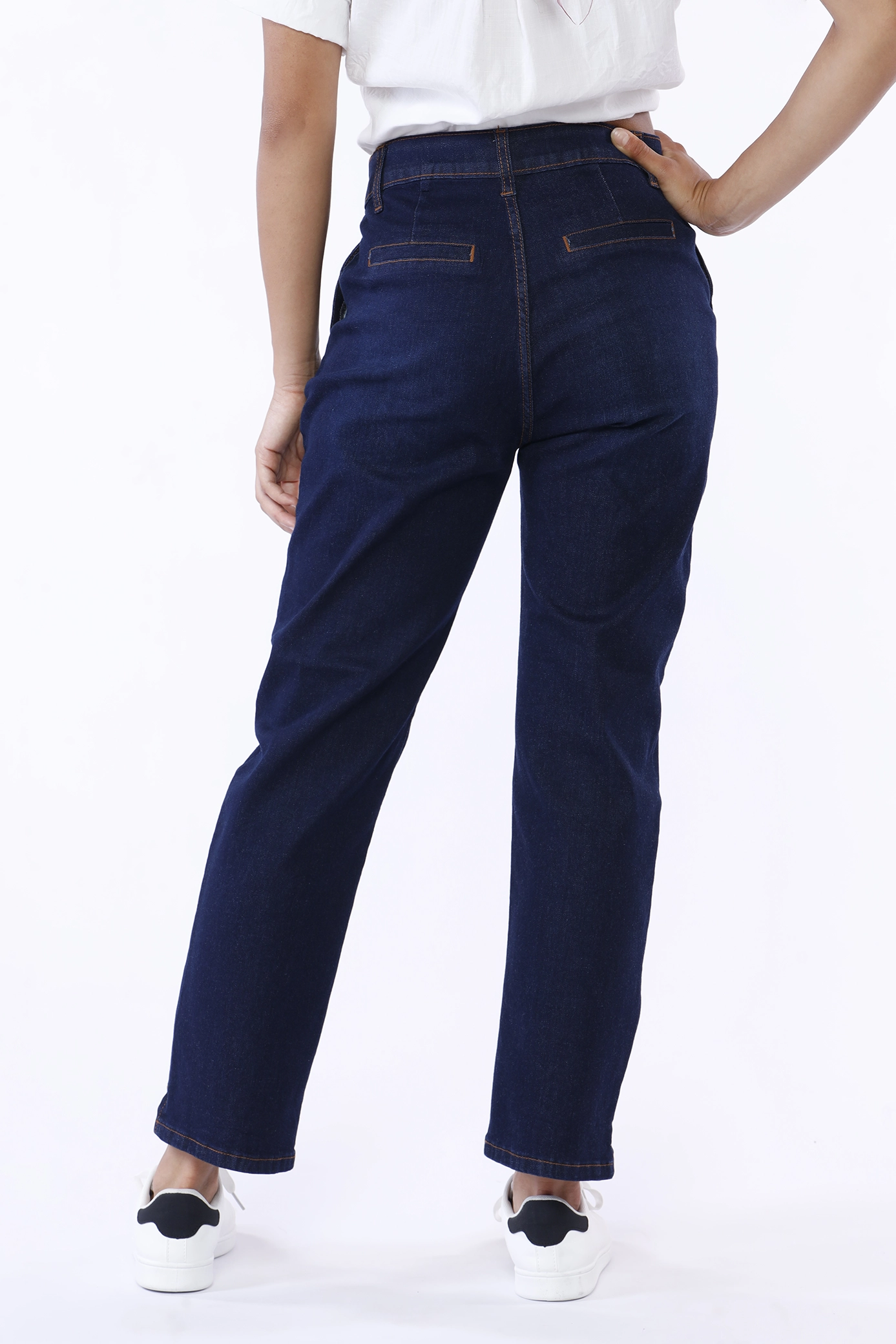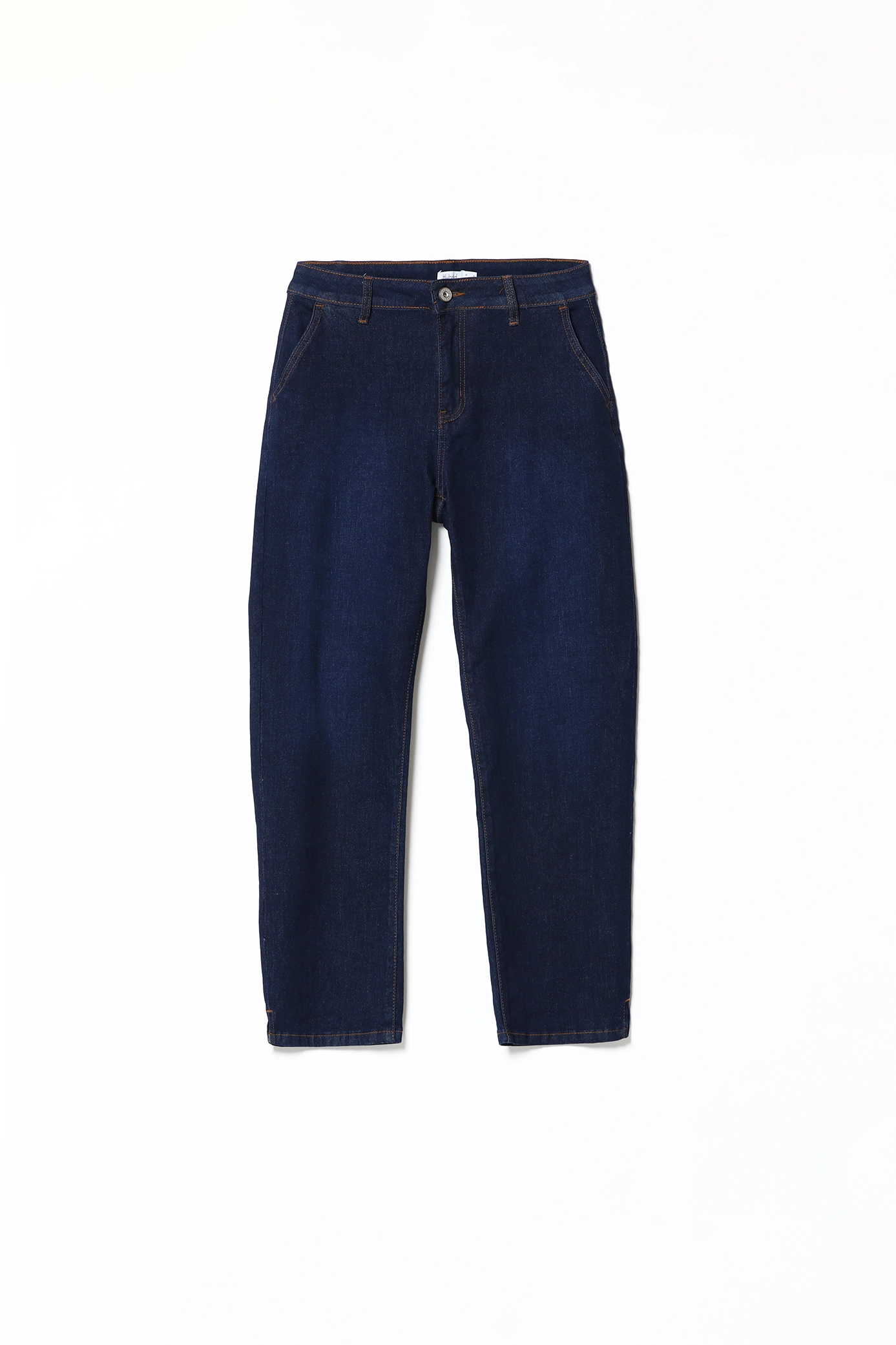 Jeans classico con spacchetti laterali al fondo, bottone di chiusura e tasche laterali