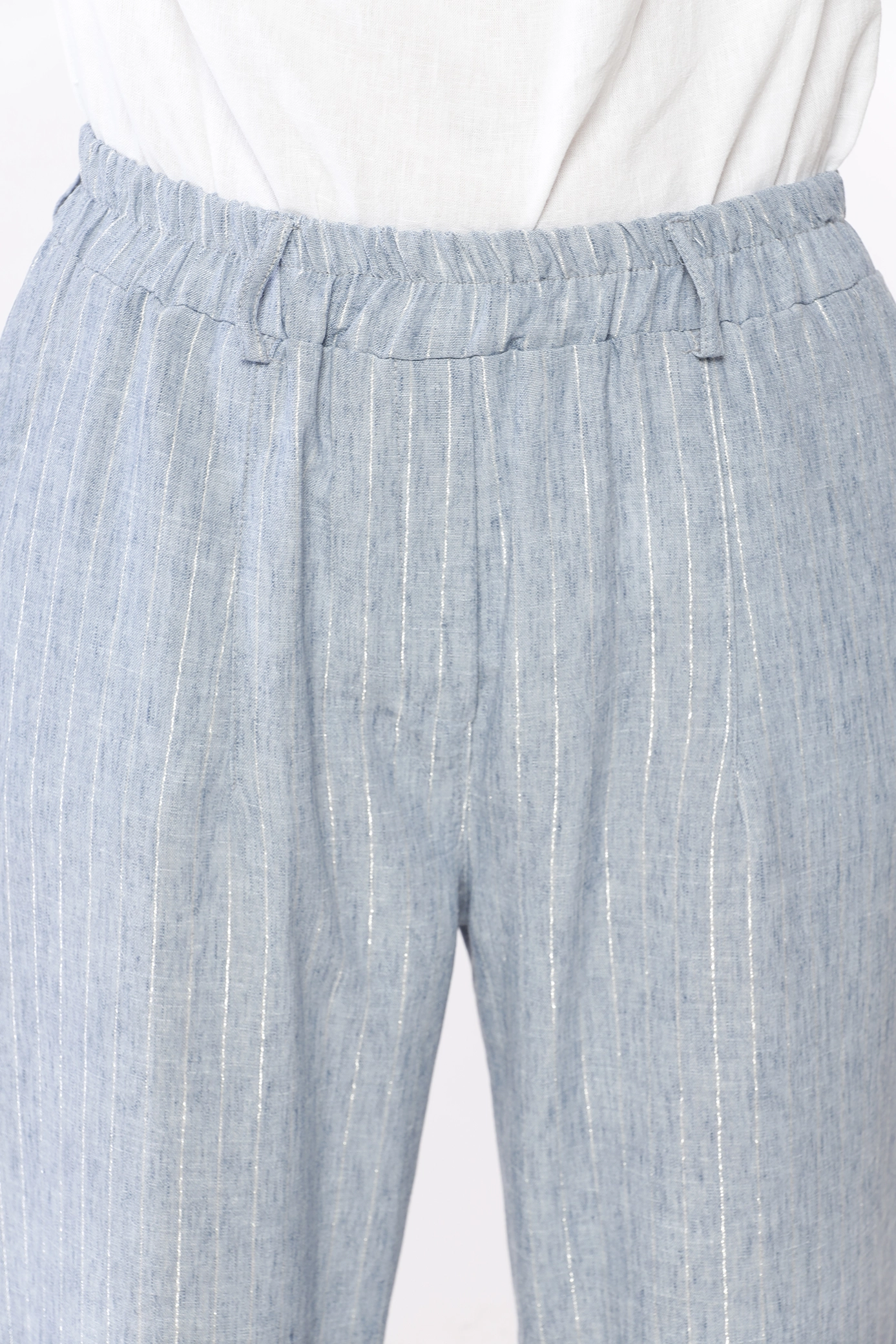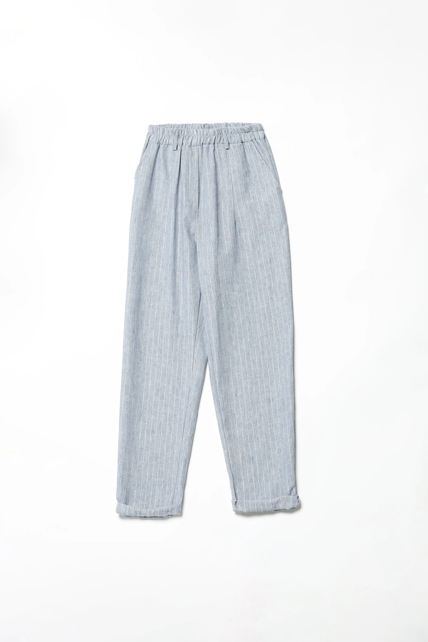 Pantalone ampio e comodo a righe, con risvolti alle caviglie