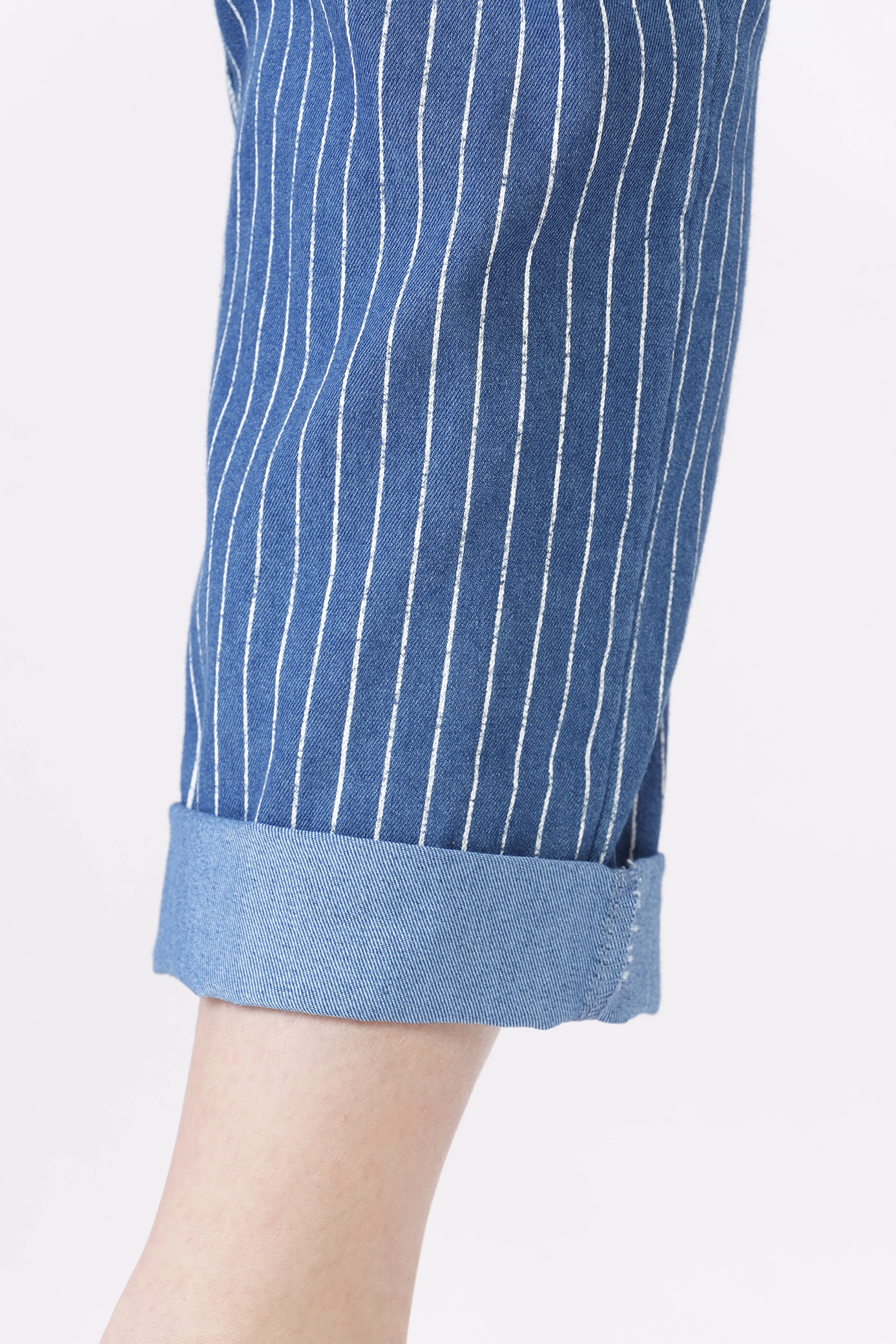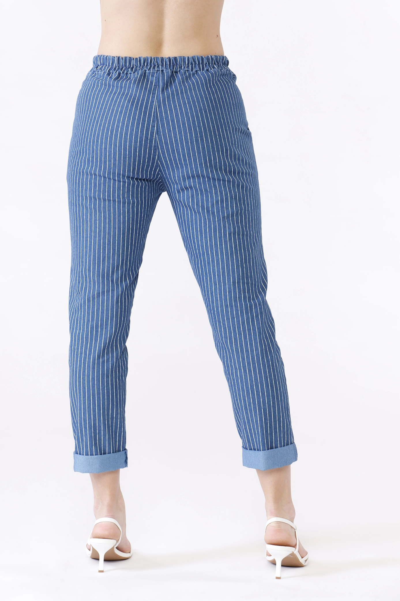 Pantaolne classico rigato, con risvolti alle caviglie, taschine laterali ed elastico di chusura in vita
