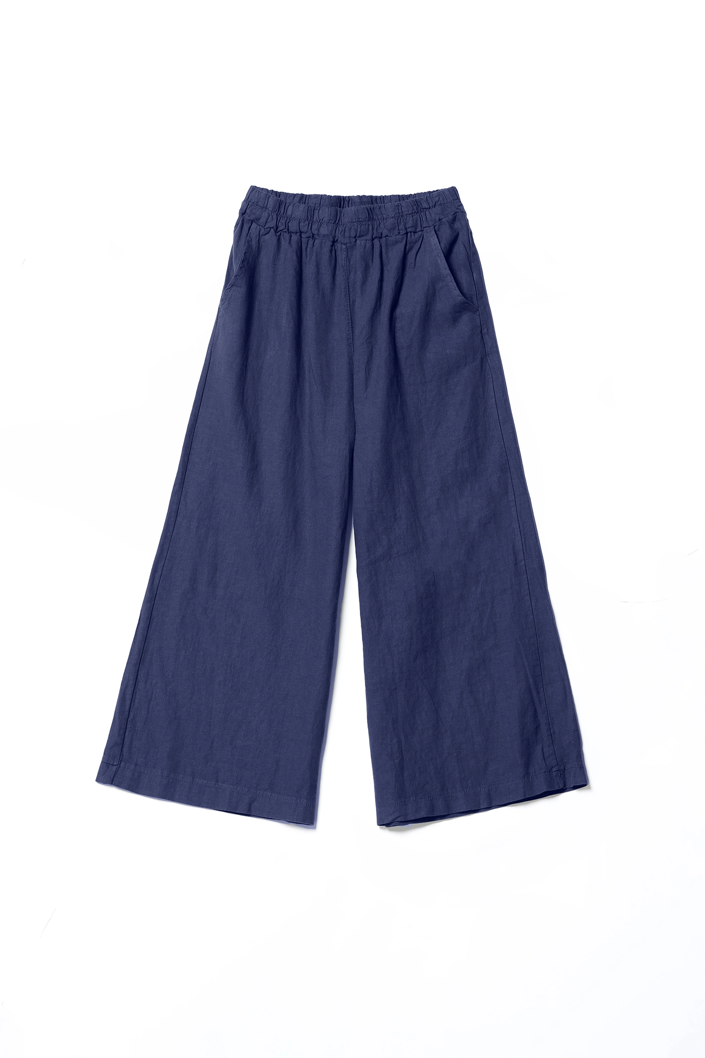 Pantalone comodo a gamba larga, con elastico di chiusura arricciato in vita
