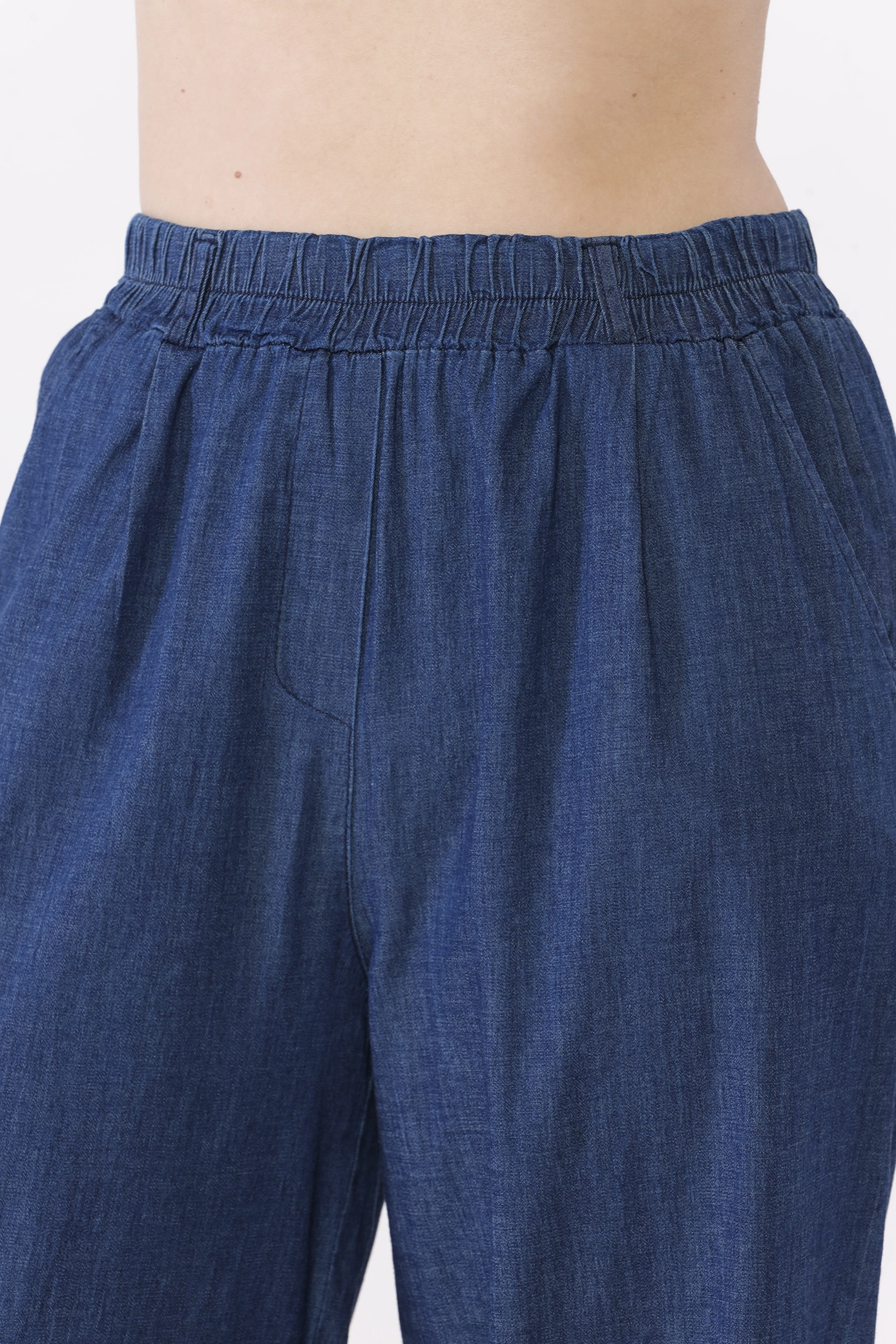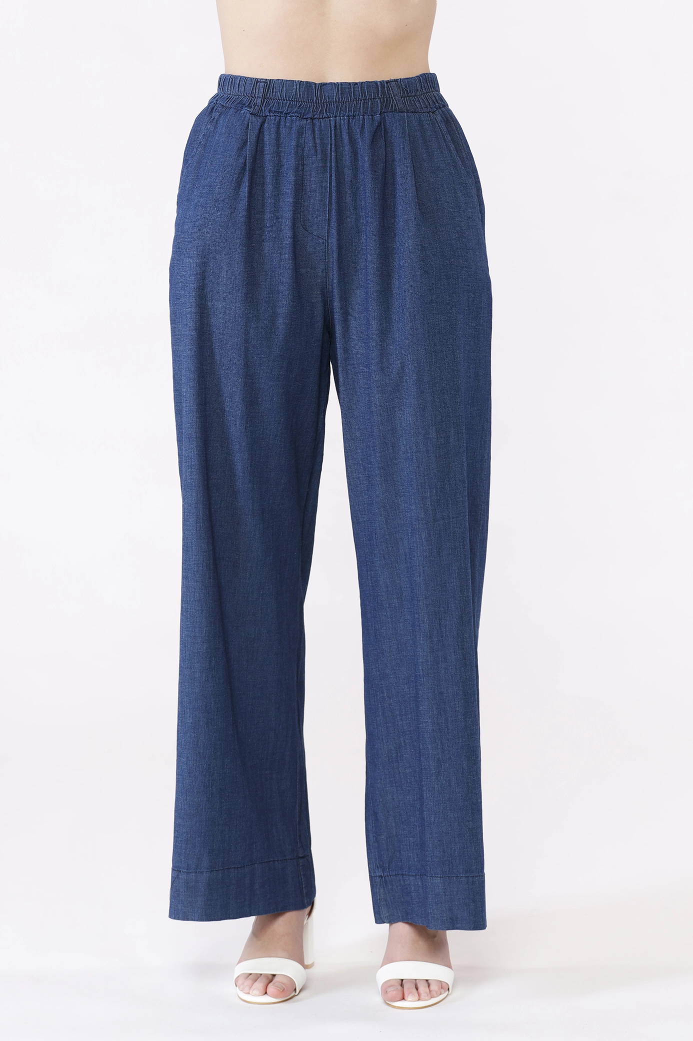 Pantalone wide leg in denim con comode tasche ed elastico di chiusura