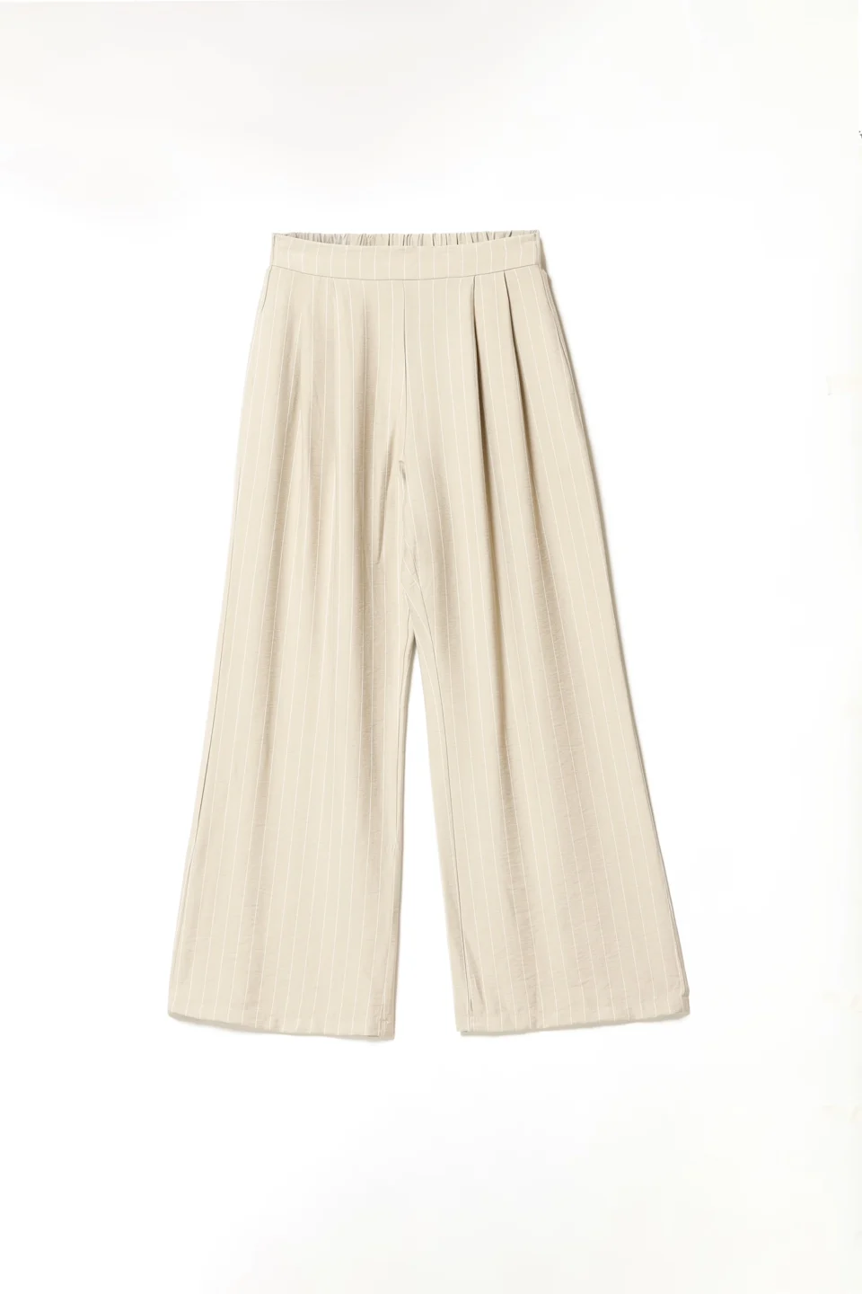 Puoi optare per un pantalone wide leg, che sia comodo di giorno ed elegante di sera, da mettere con una t-shirt da cambiare poi con una camicia. Scegli delle scarpe comode di un colore neutro che si sposi bene in entrambi i momenti.